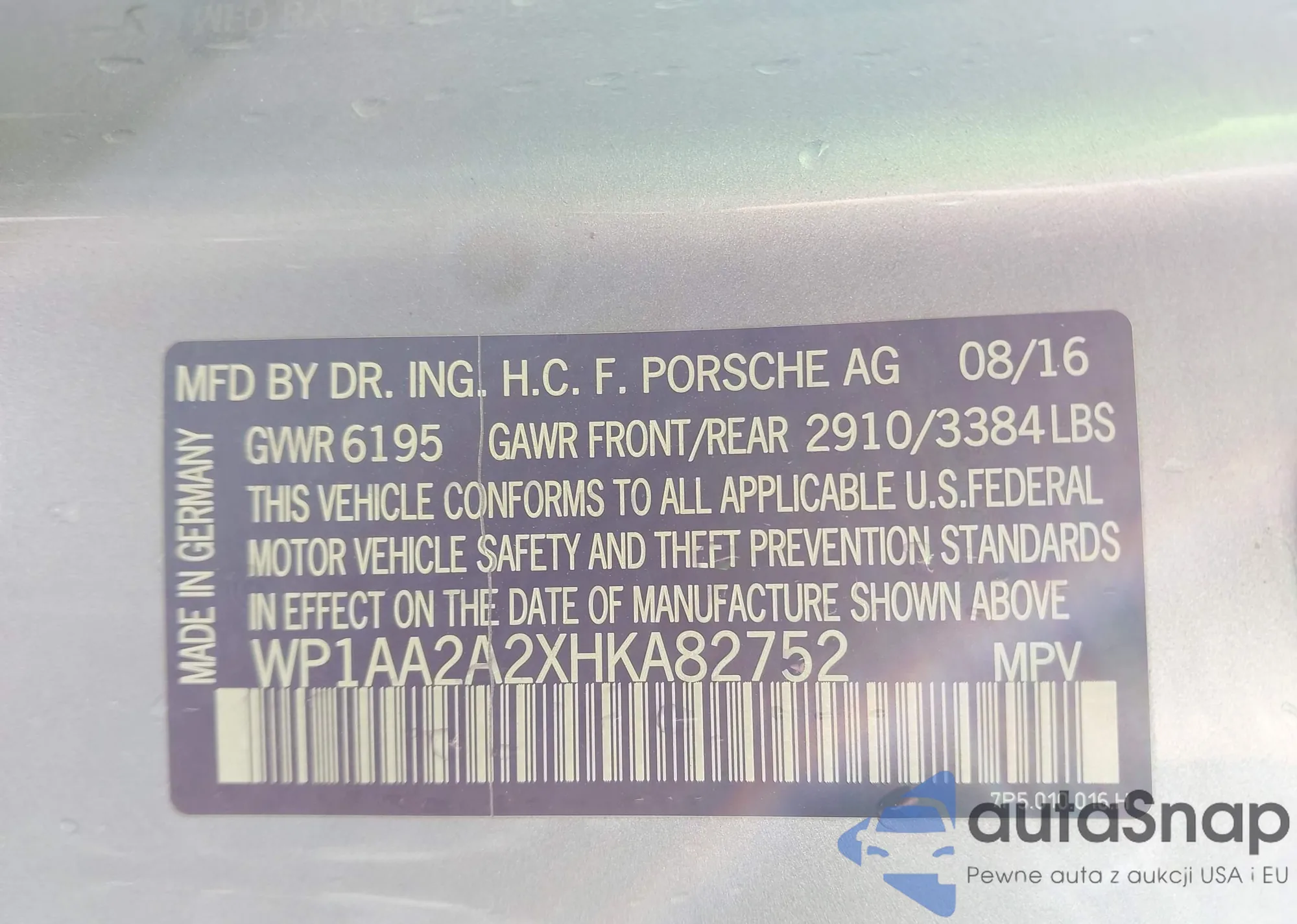 • VIN WP1AA2A2XHKA82752