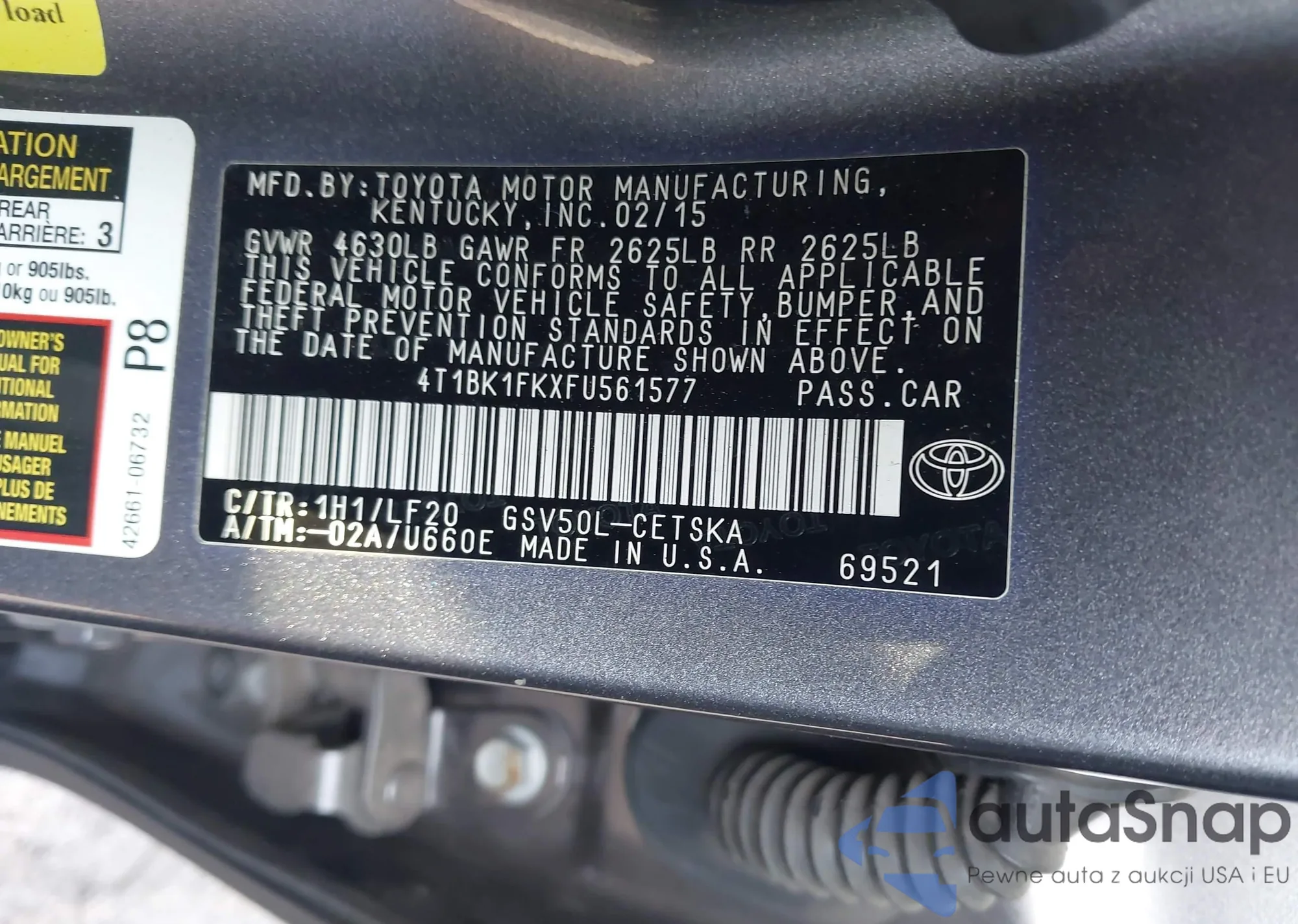 LOT: 43706932 VIN: 4T1BK1FKXFU561577