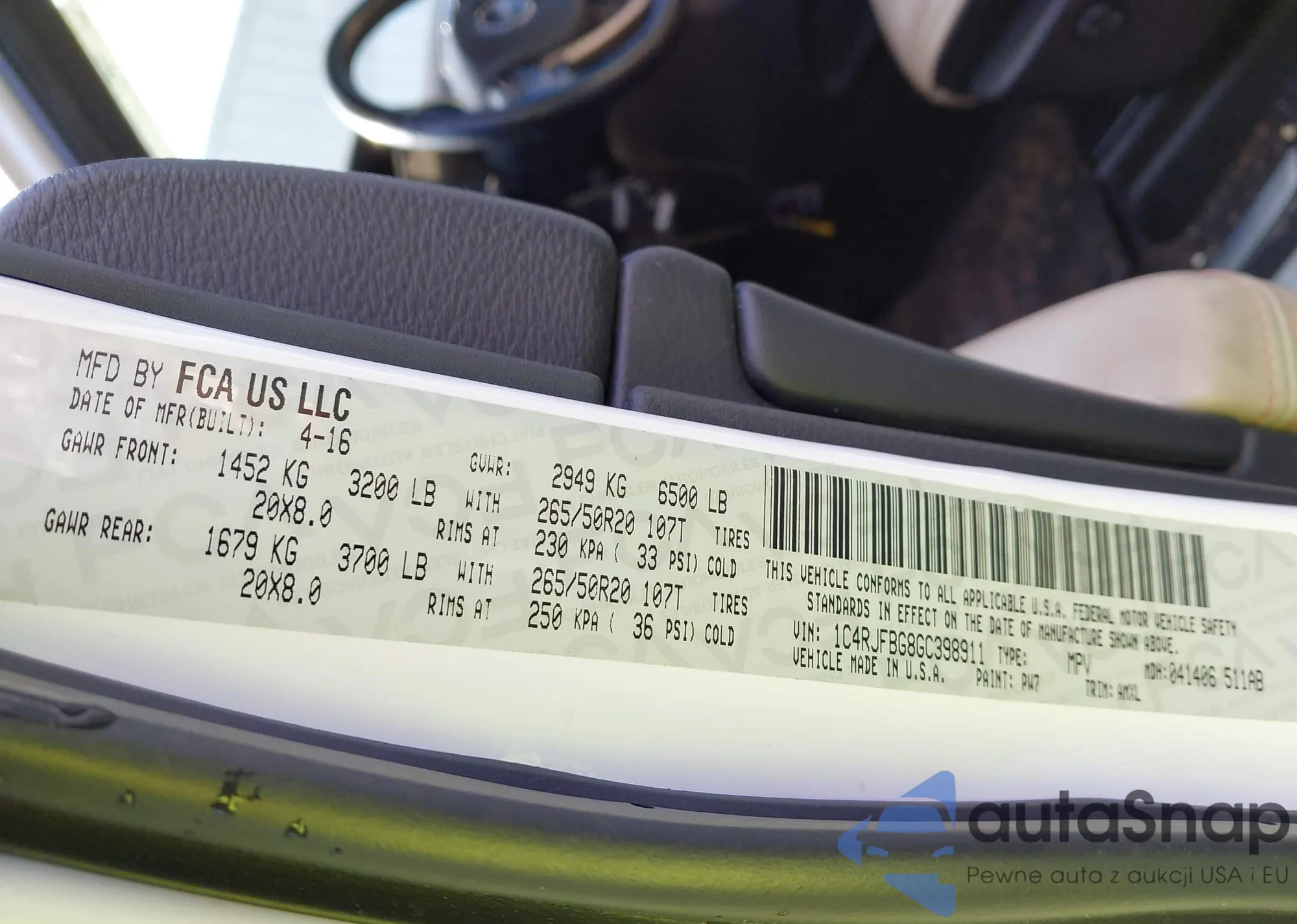 • VIN 1C4RJFBG8GC398911
