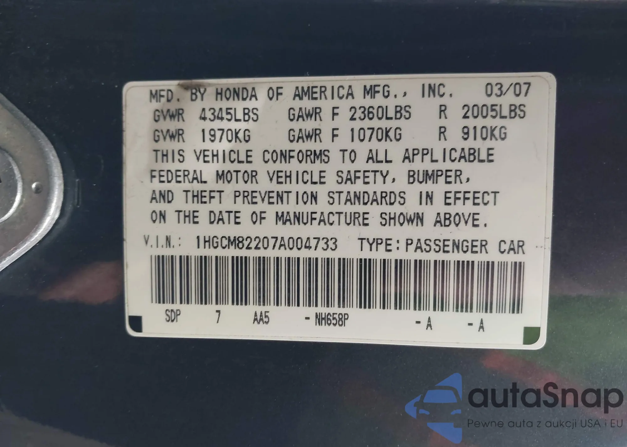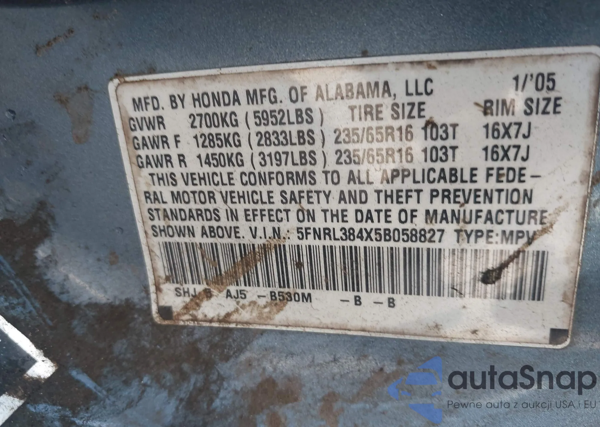 • VIN 5FNRL384X5B058827