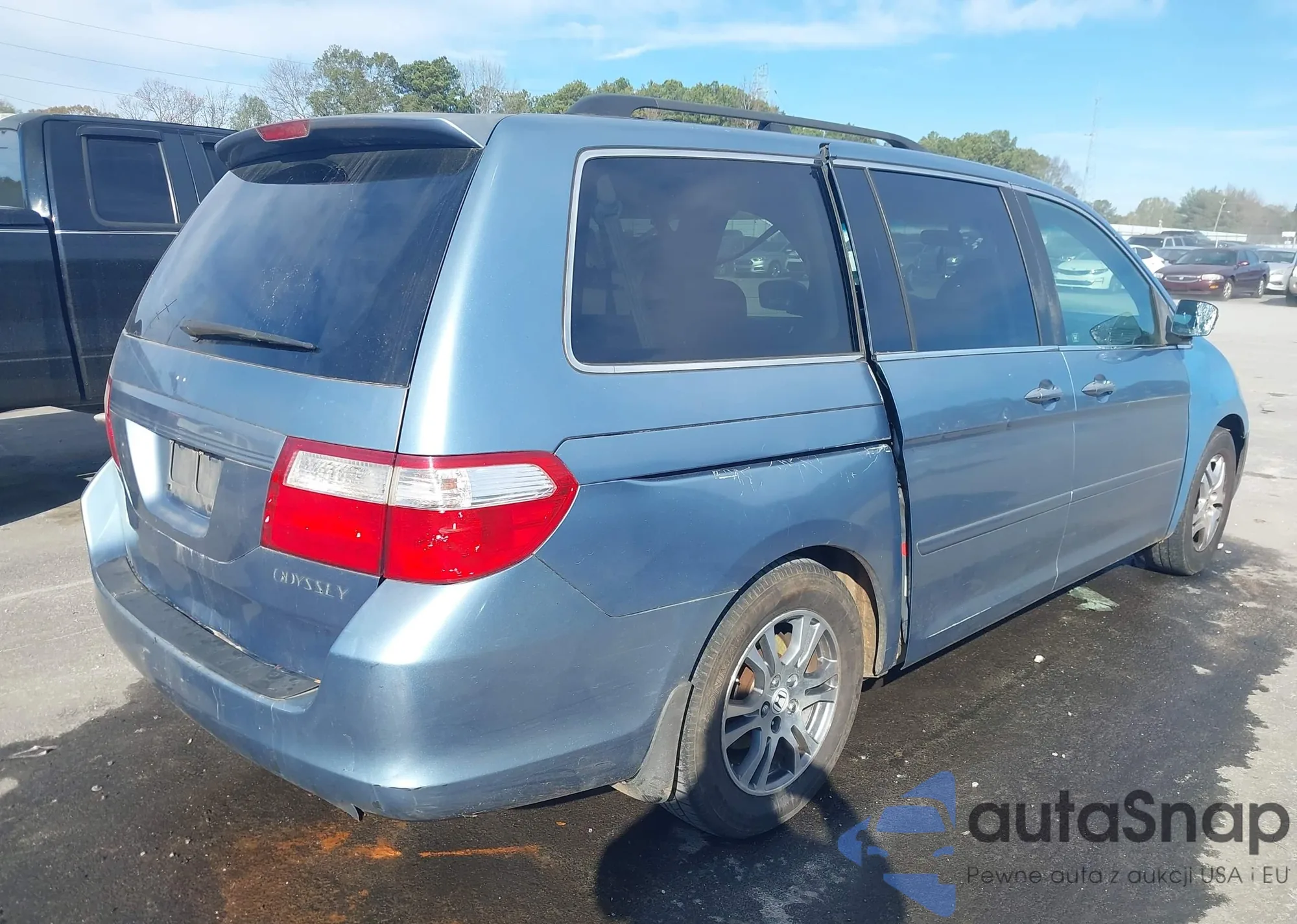 2005 Honda Odyssey Ex z USA, uszkodzony, nr VIN 5FNRL384X5B058827