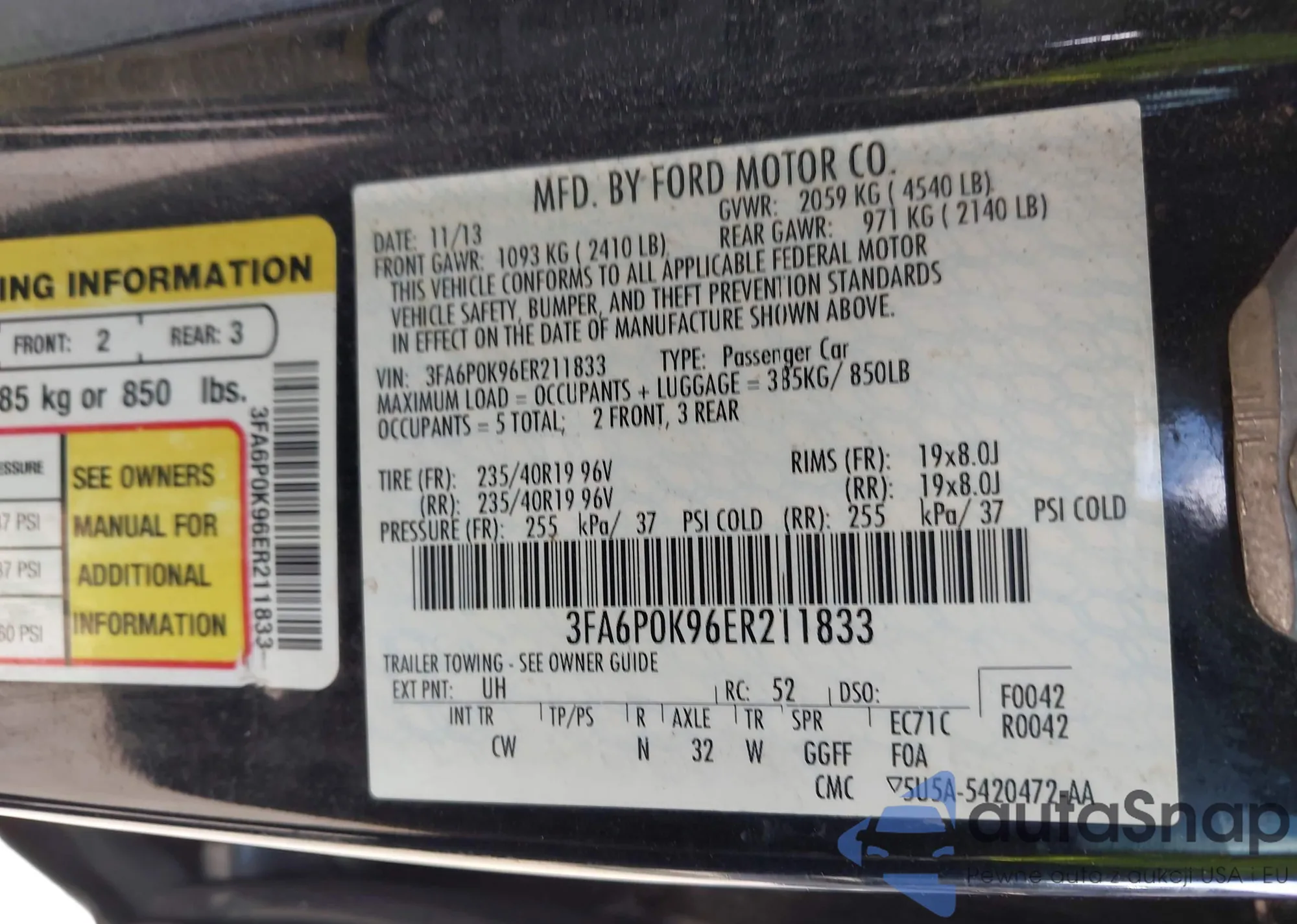• VIN 3FA6P0K96ER211833