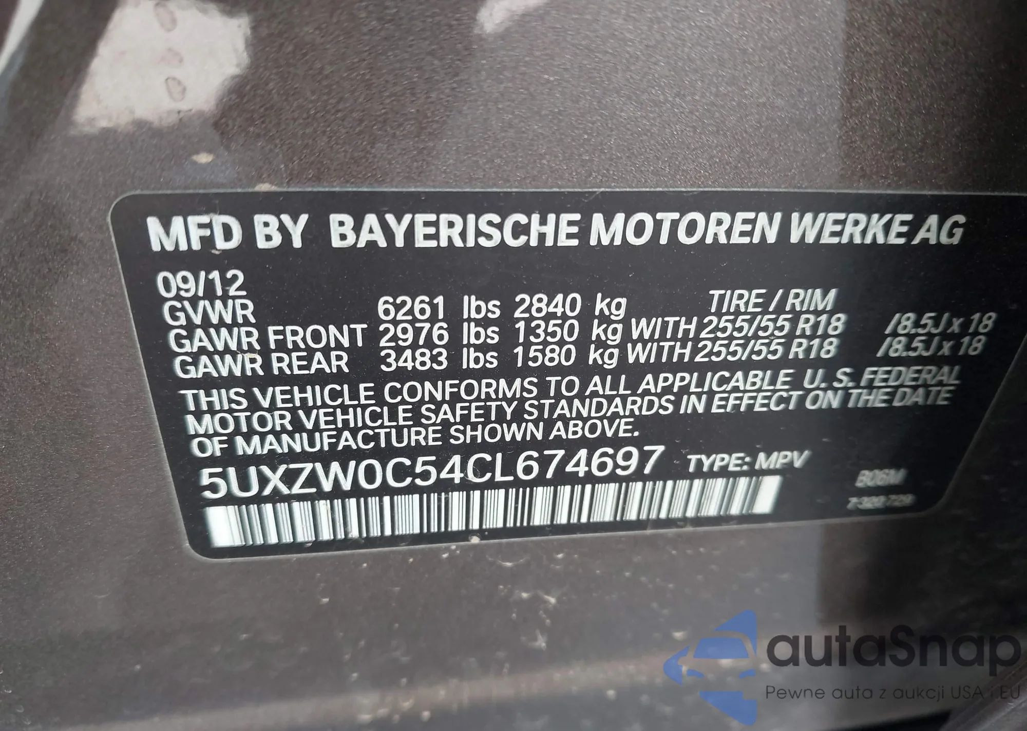 • VIN 5UXZW0C54CL674697