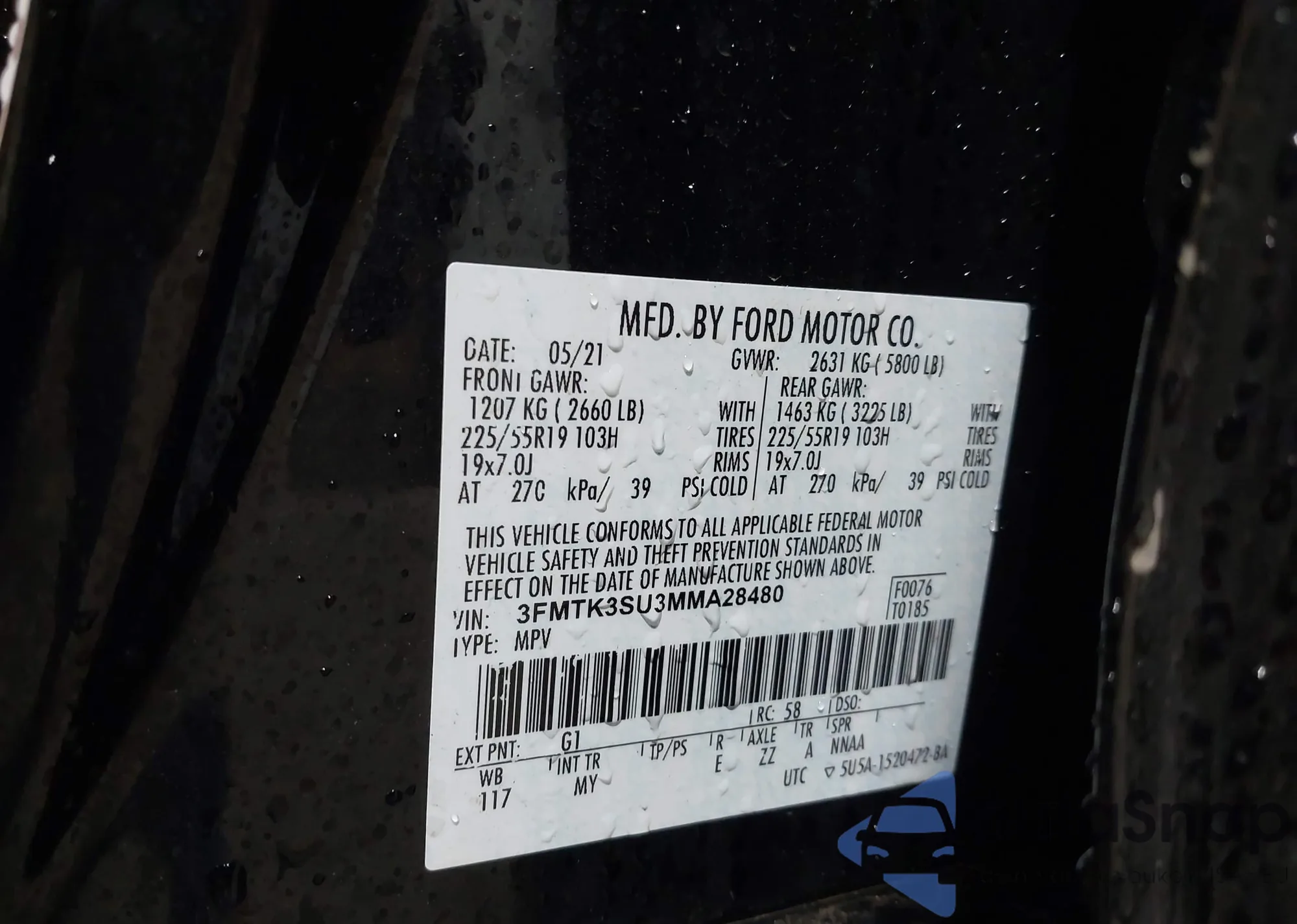 LOT: 43763687 VIN: 3FMTK3SU3MMA28480
