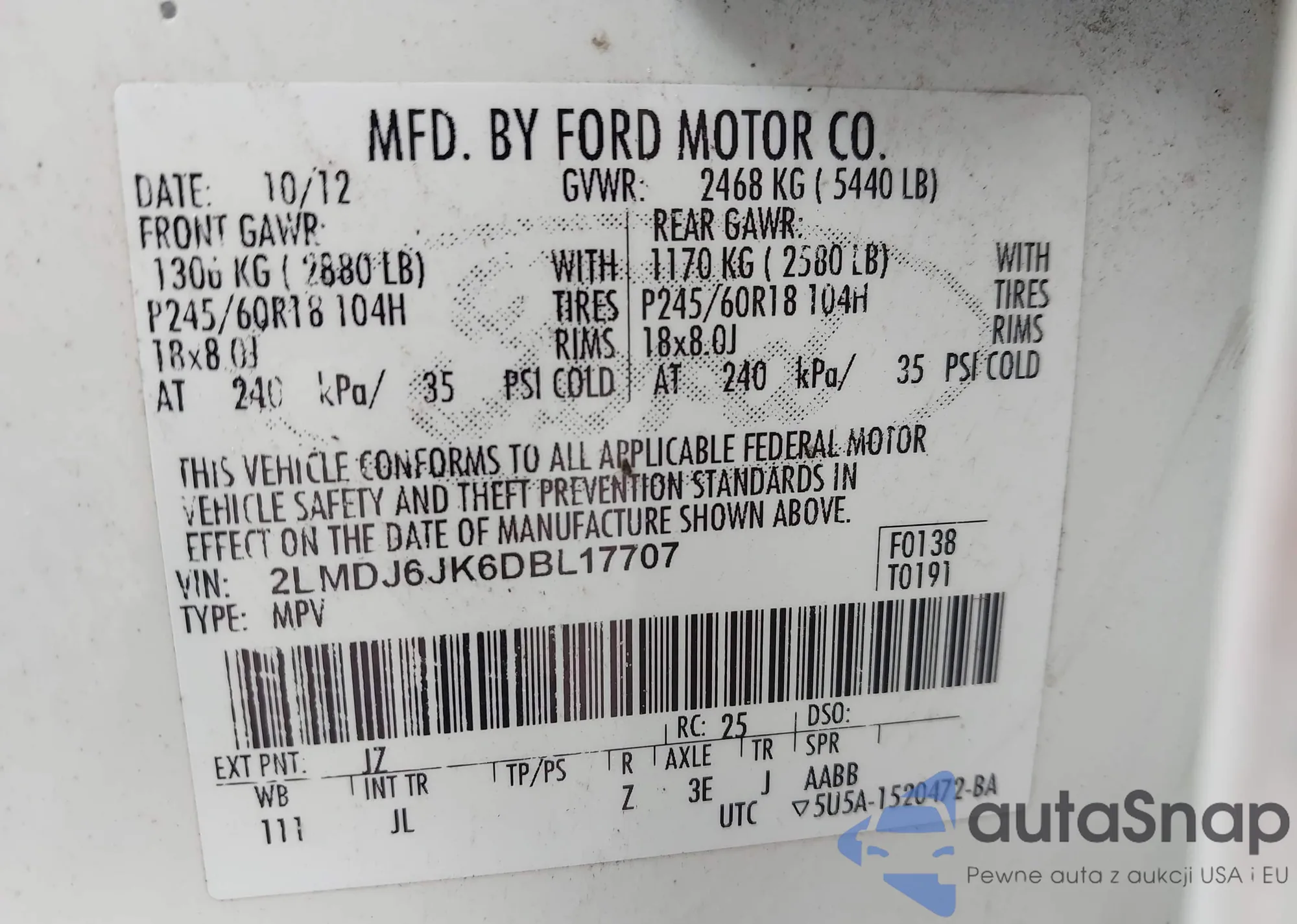 • VIN 2LMDJ6JK6DBL17707