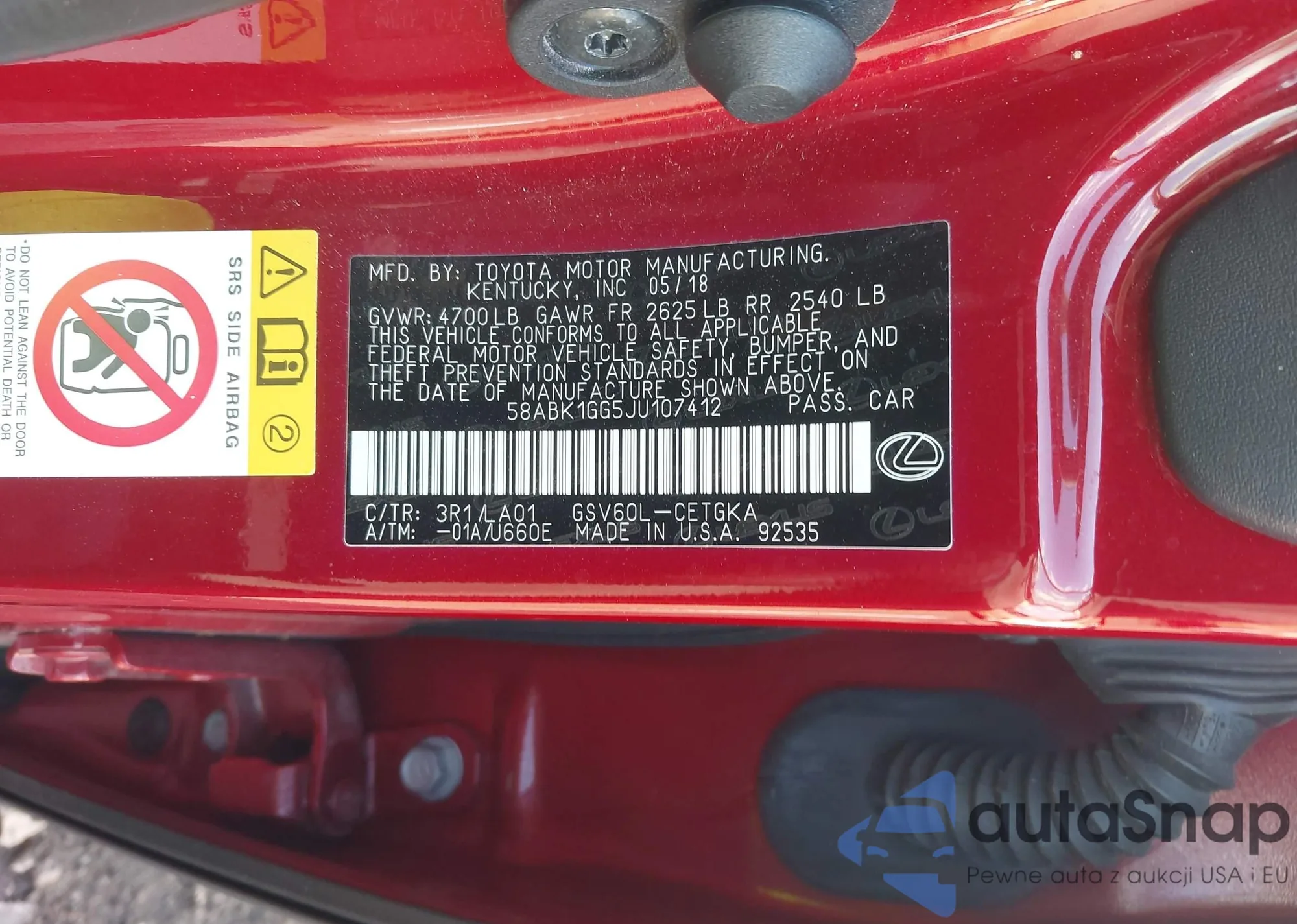 • VIN 58ABK1GG5JU107412