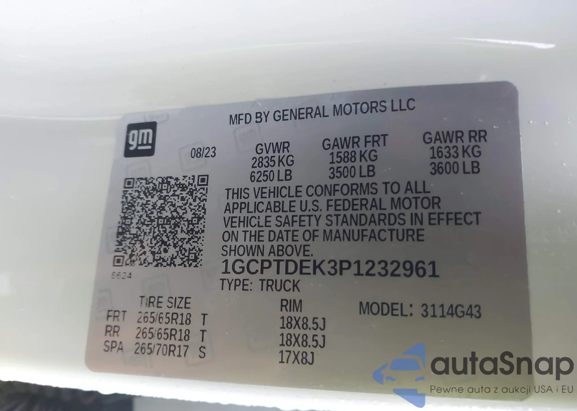 LOT: 43785787 VIN: 58ABK1GG5JU107412