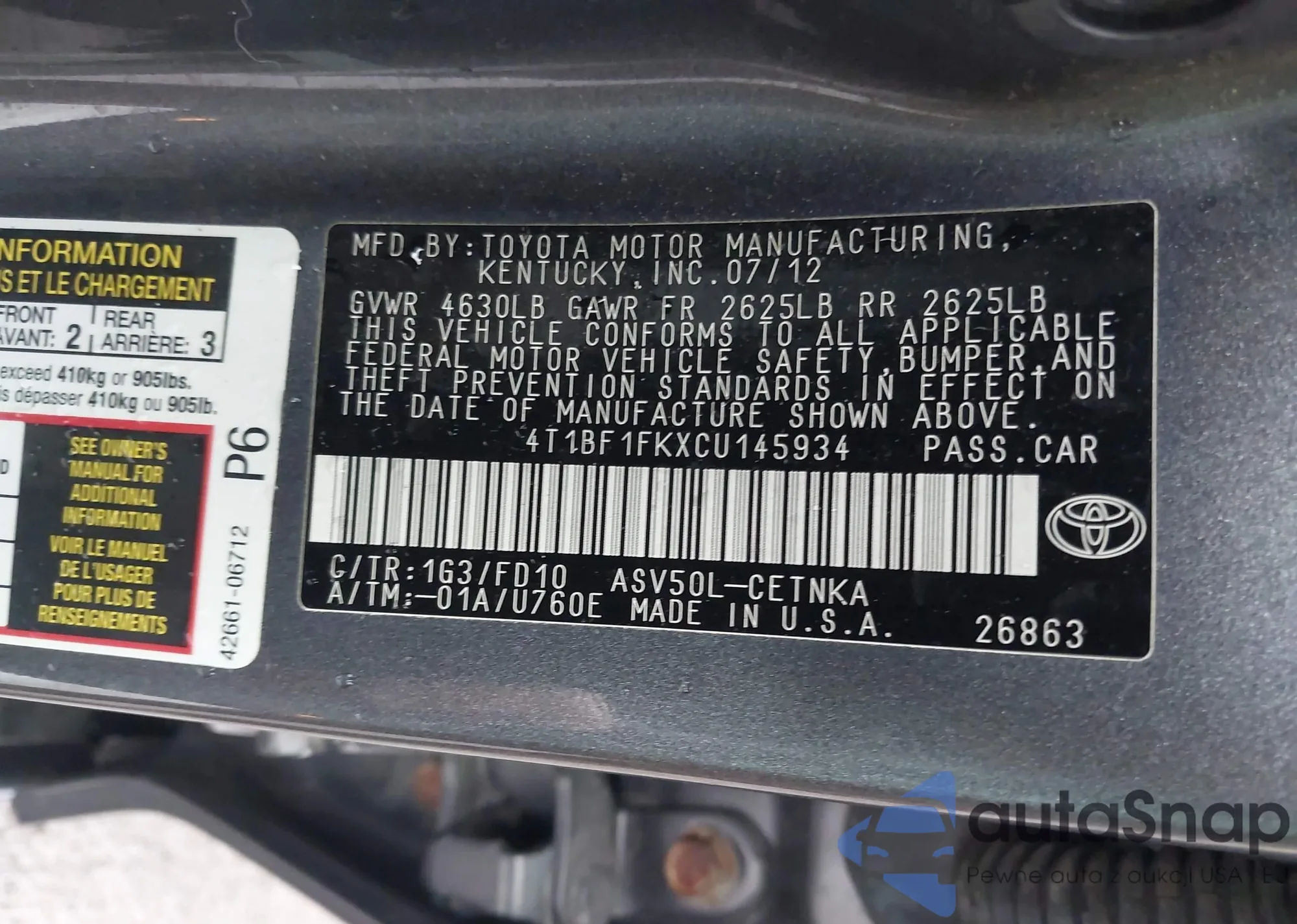 • VIN 4T1BF3EK9BU136718
