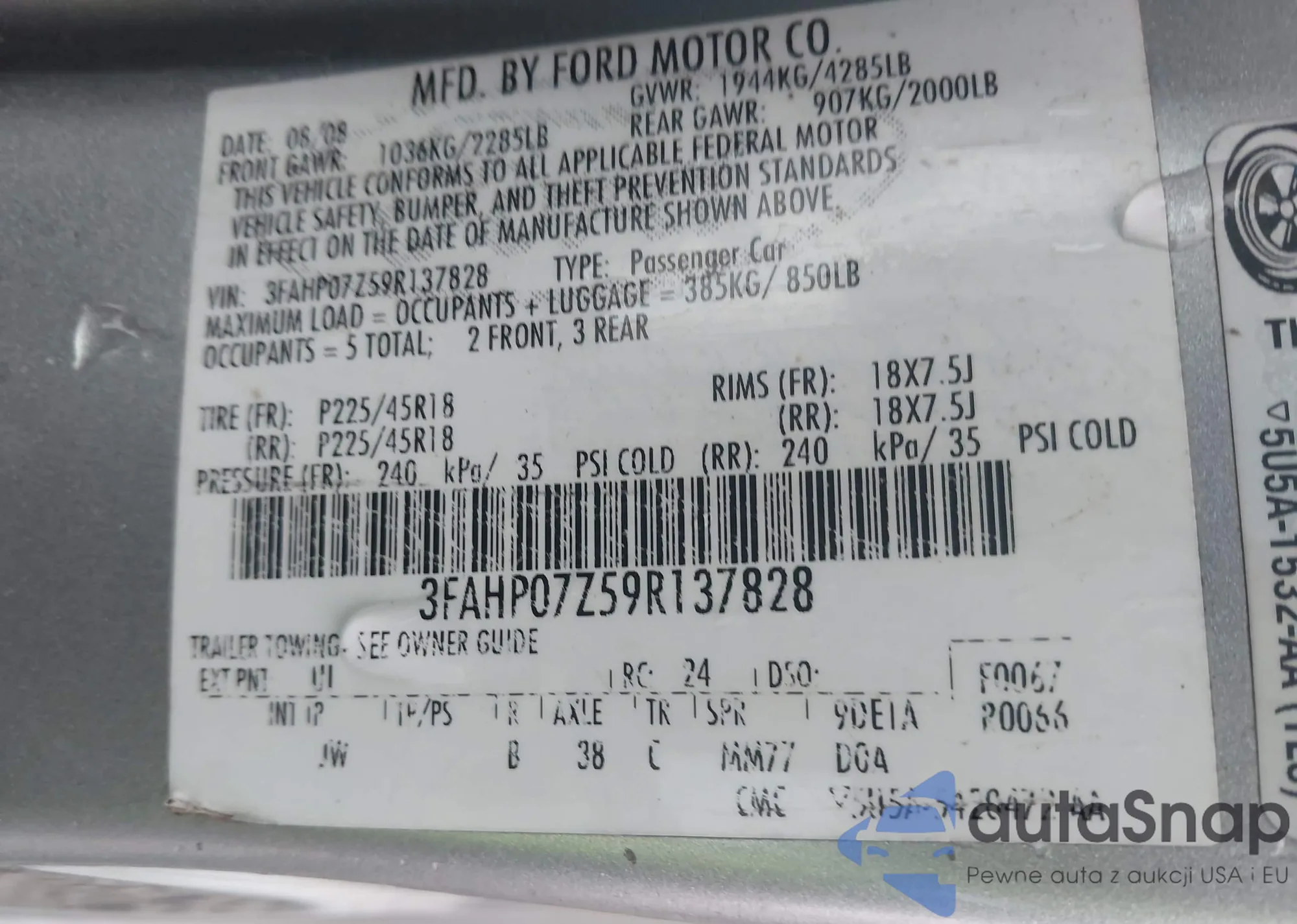 • VIN 3FAHP07Z59R137828