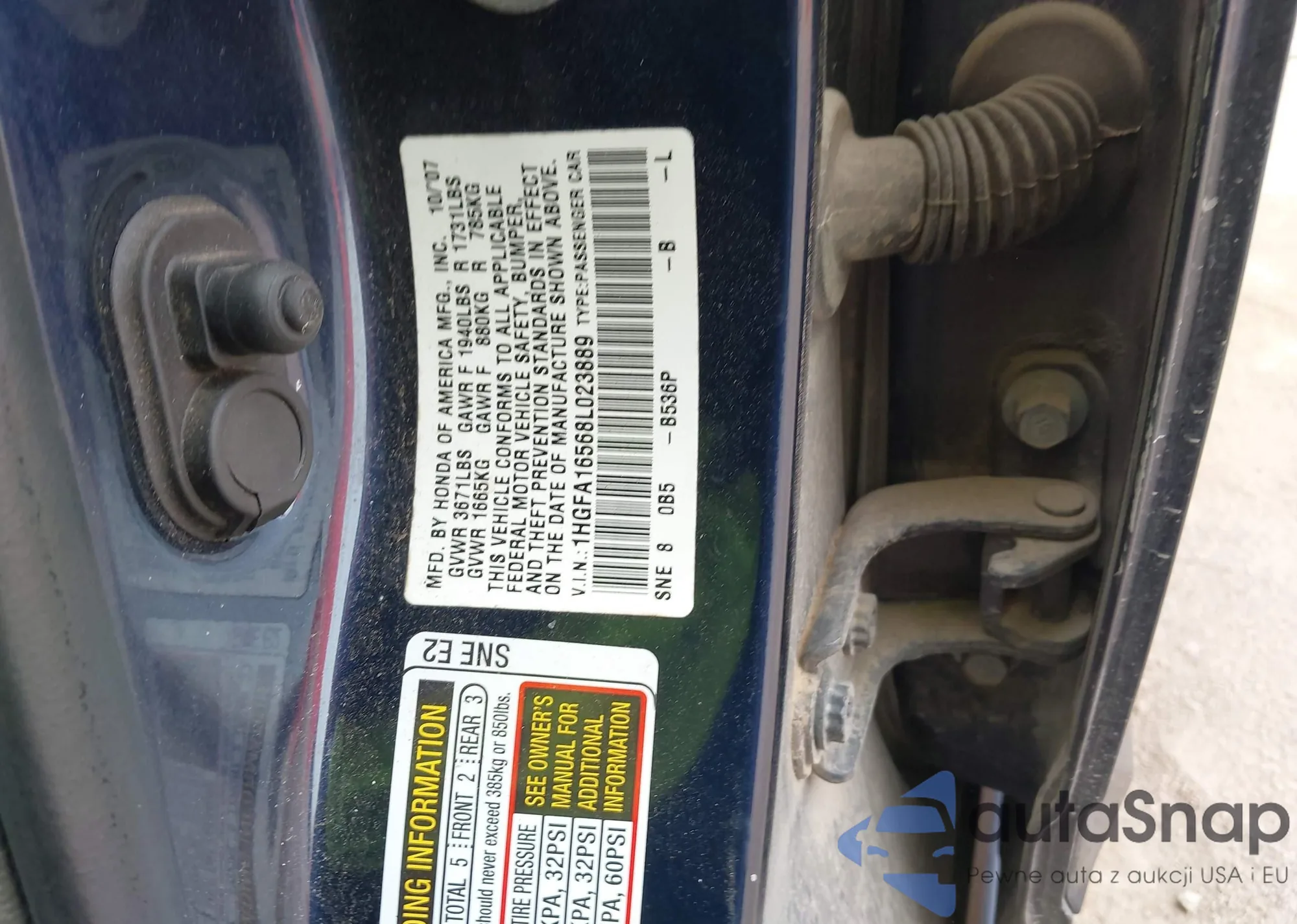 LOT: 43840889 VIN: 1HGCP26809A029783