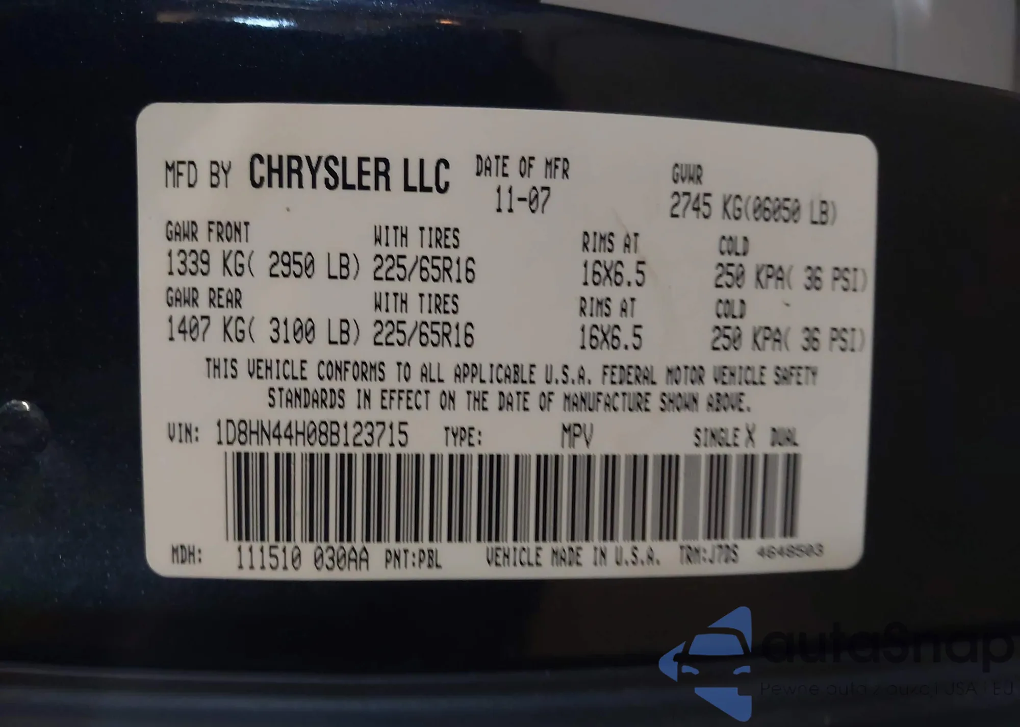 • VIN 1D8HN44H08B123715