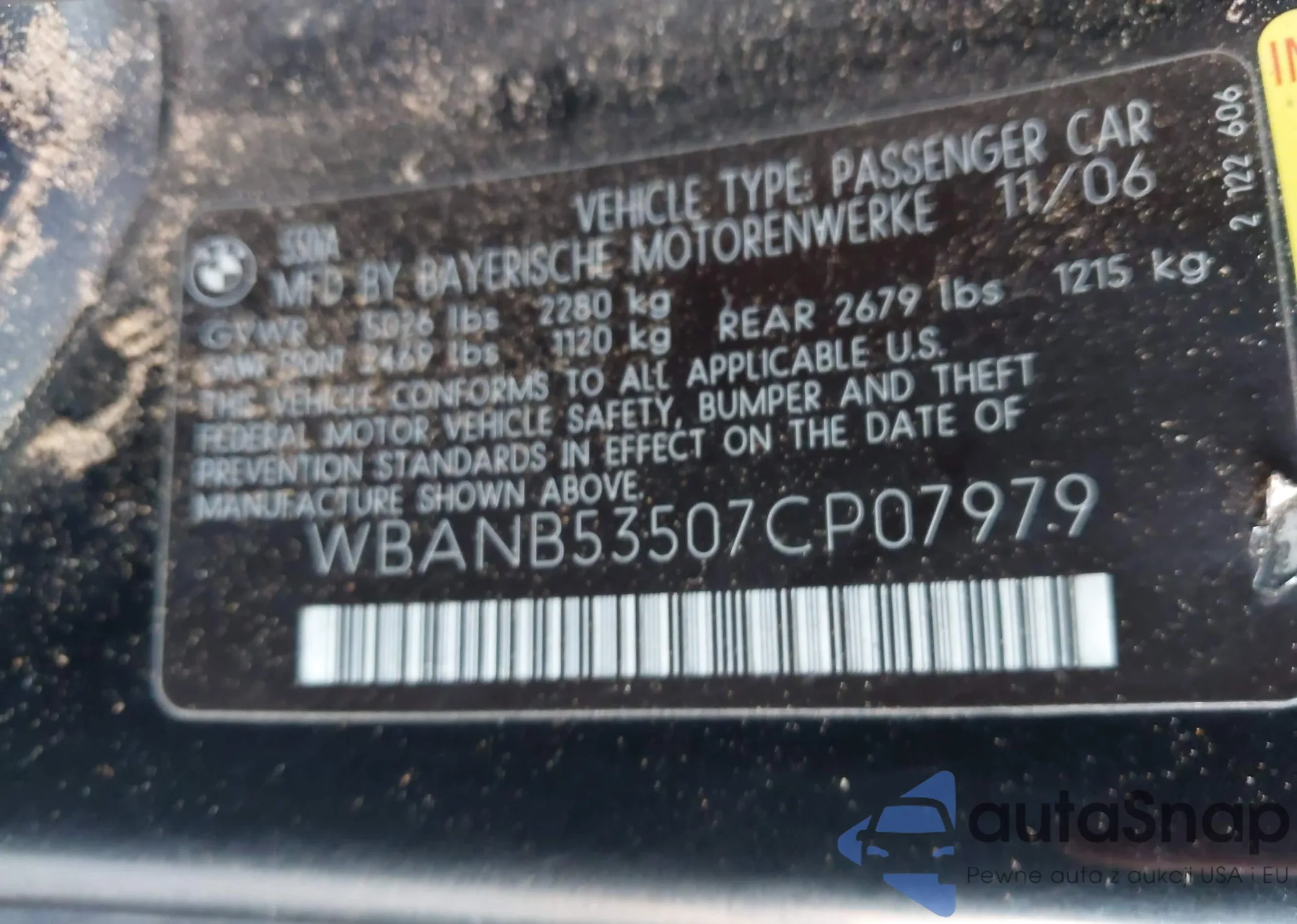 • VIN WBANB53507CP07979