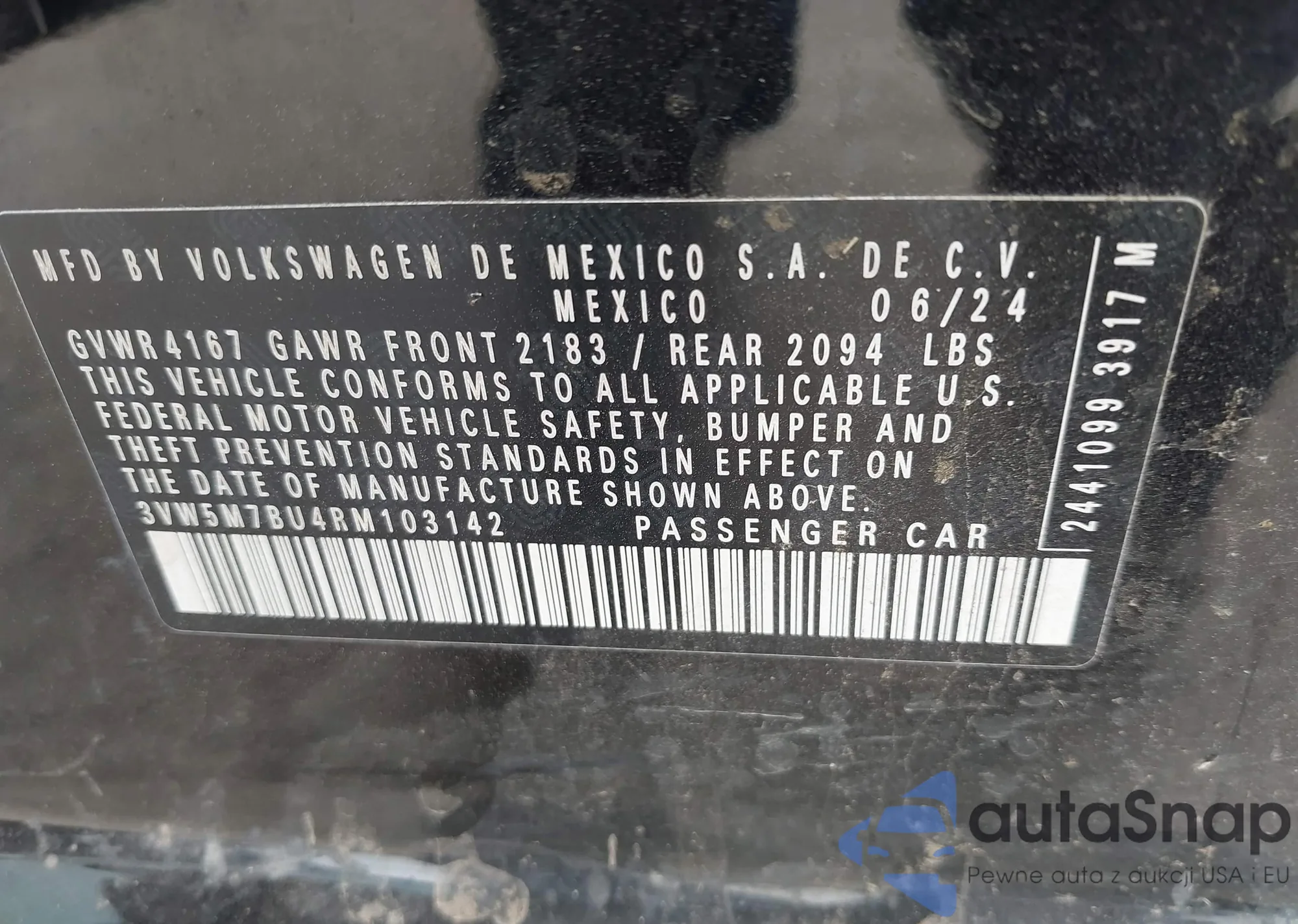 • VIN 3VW5M7BU4RM103142