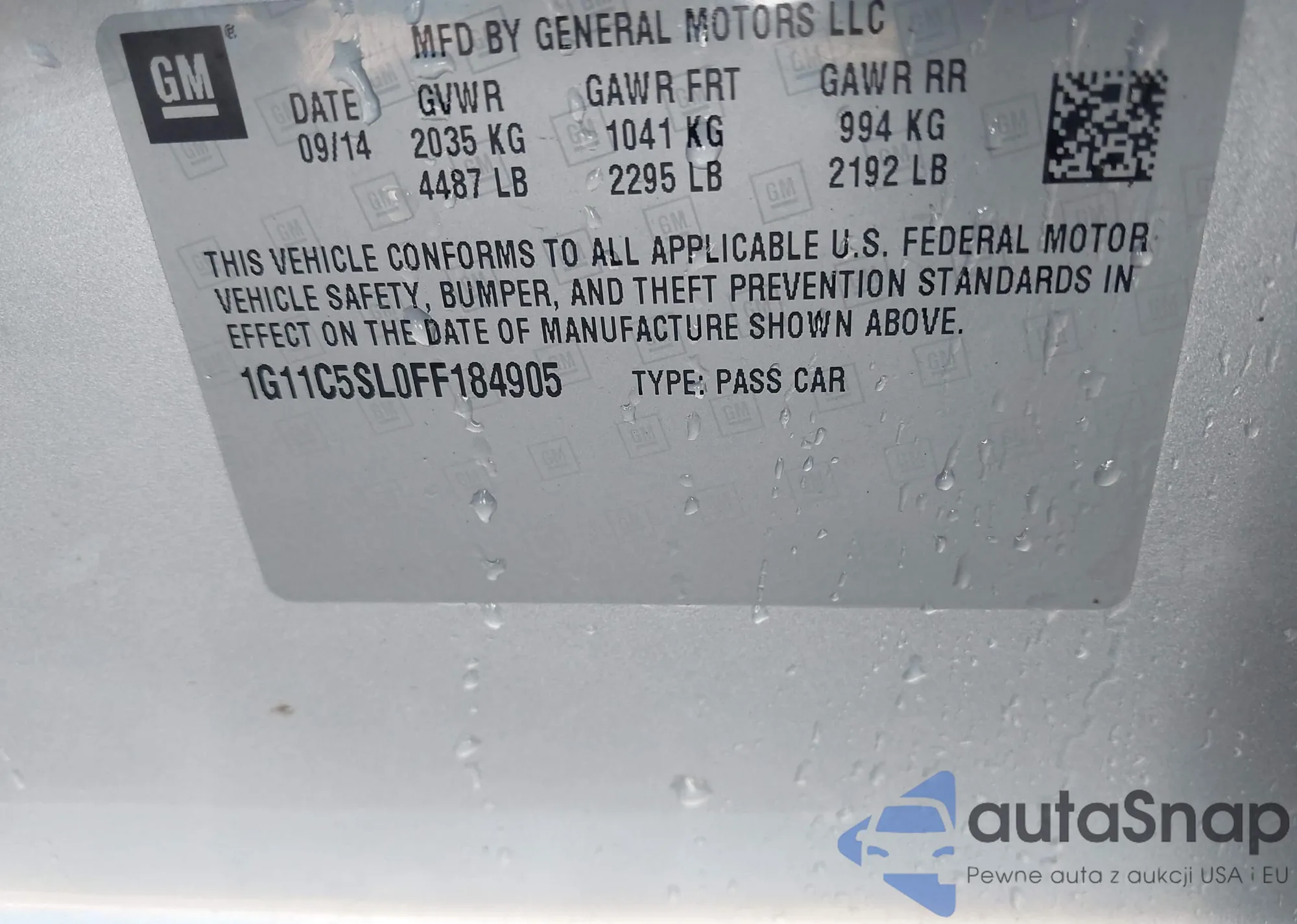 LOT: 43116883 VIN: 1G11C5SL0FF184905