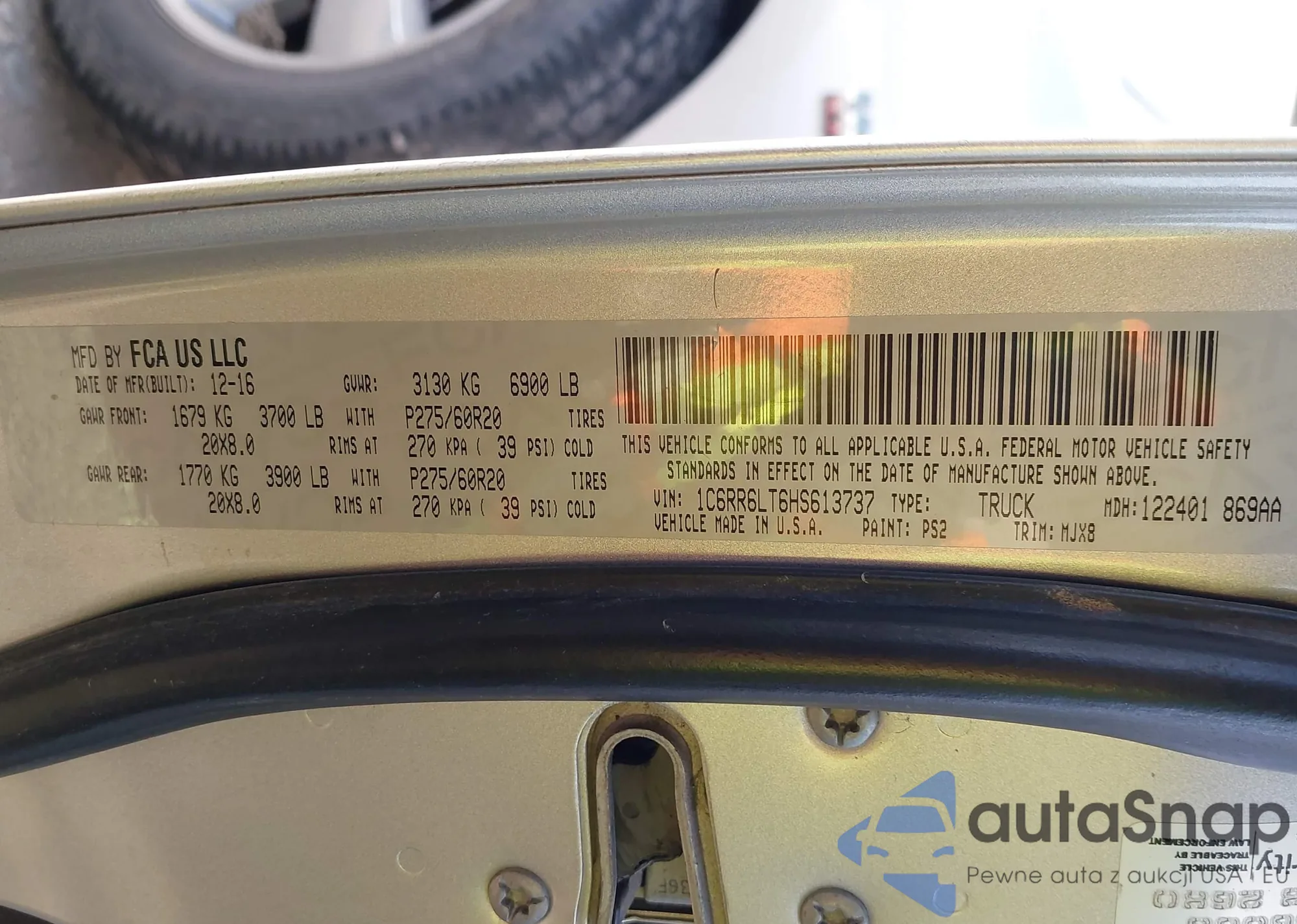 • VIN 1C6RR6LT6HS613737