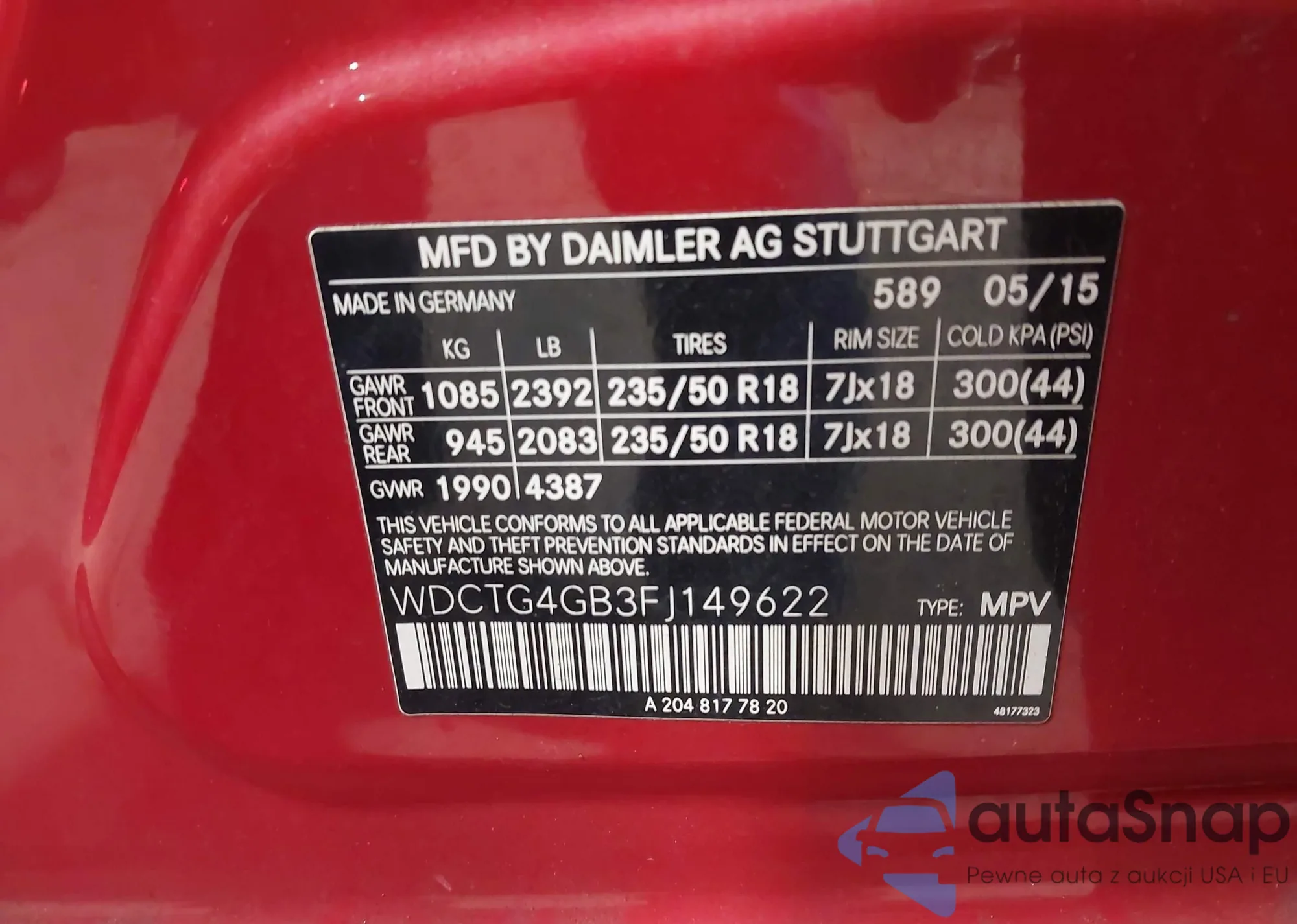• VIN WDCTG4GB3FJ149622