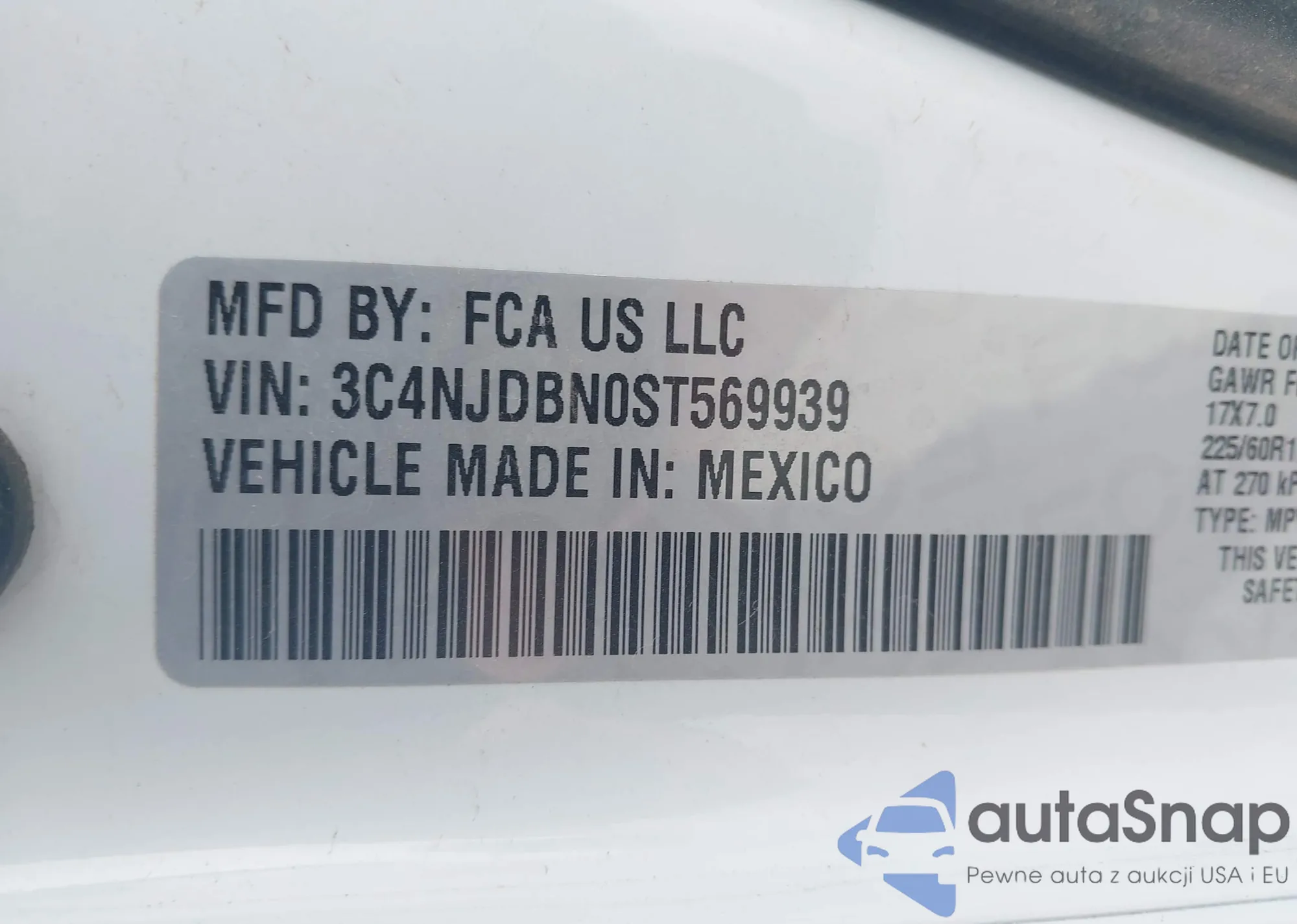 LOT: 43898659 VIN: 3C4NJDBN0ST569939