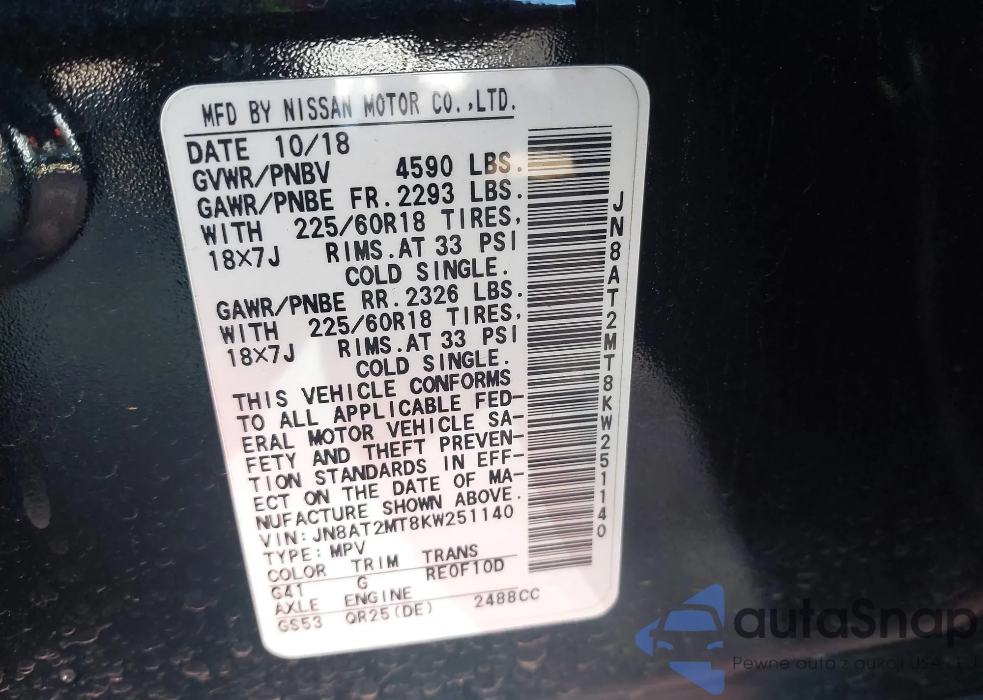 LOT: 43582947 VIN: JN8AT2MT8KW251140