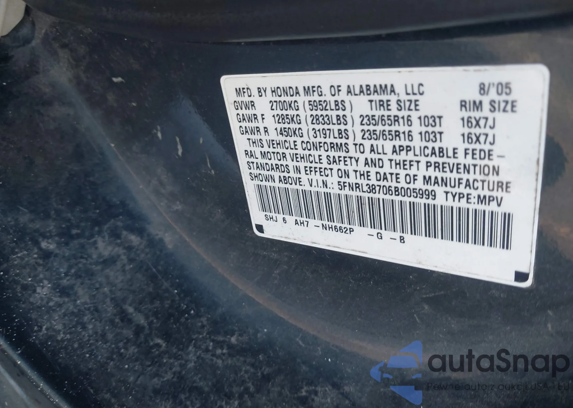 • VIN SHHFK7H67KU227064