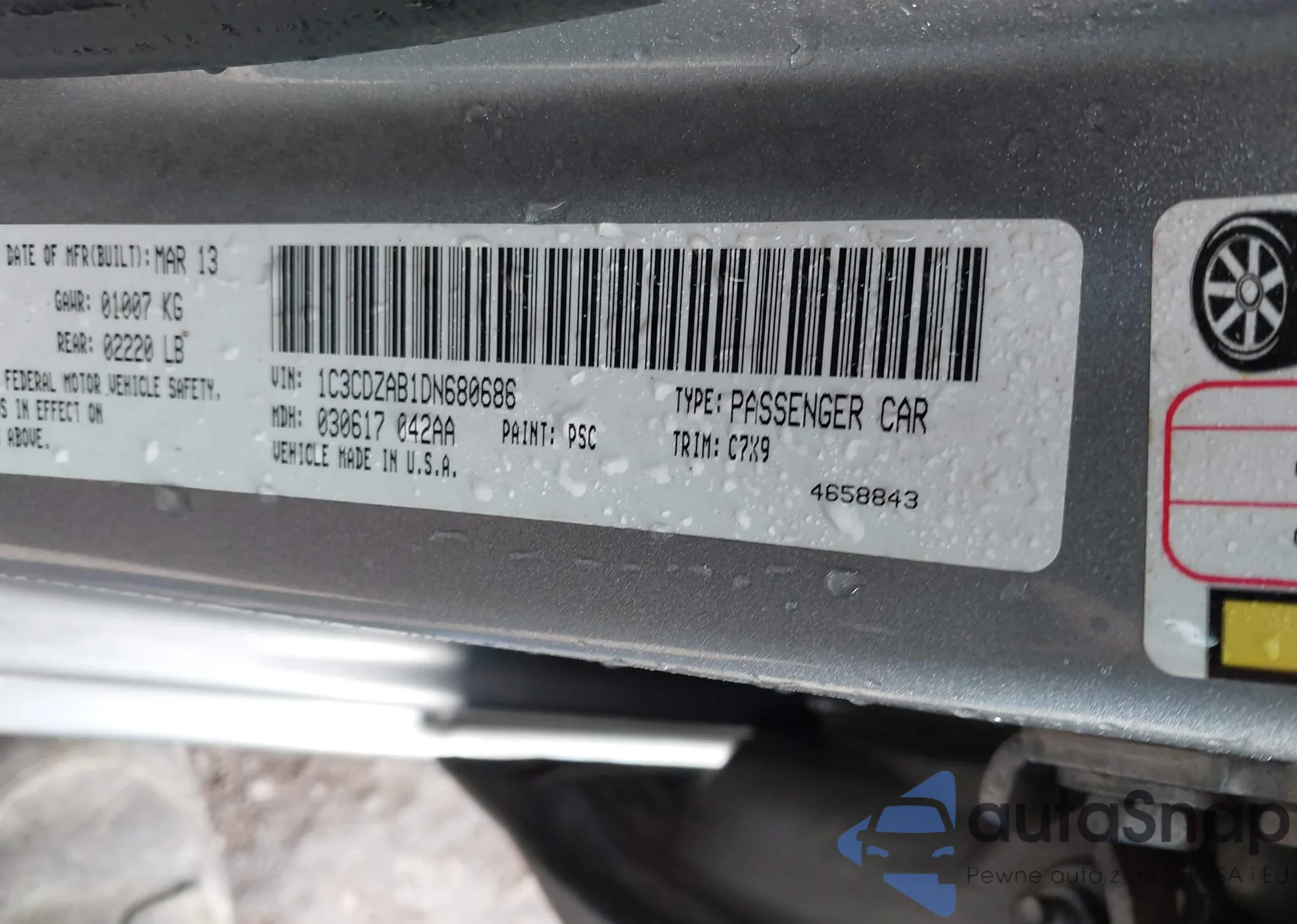• VIN 1C3CDZAB1DN680686