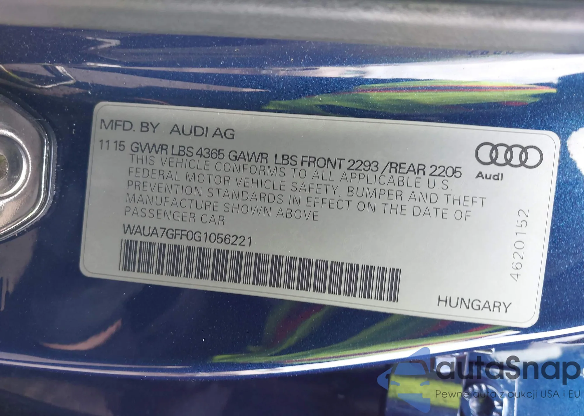• VIN WAUA7GFF0G1056221
