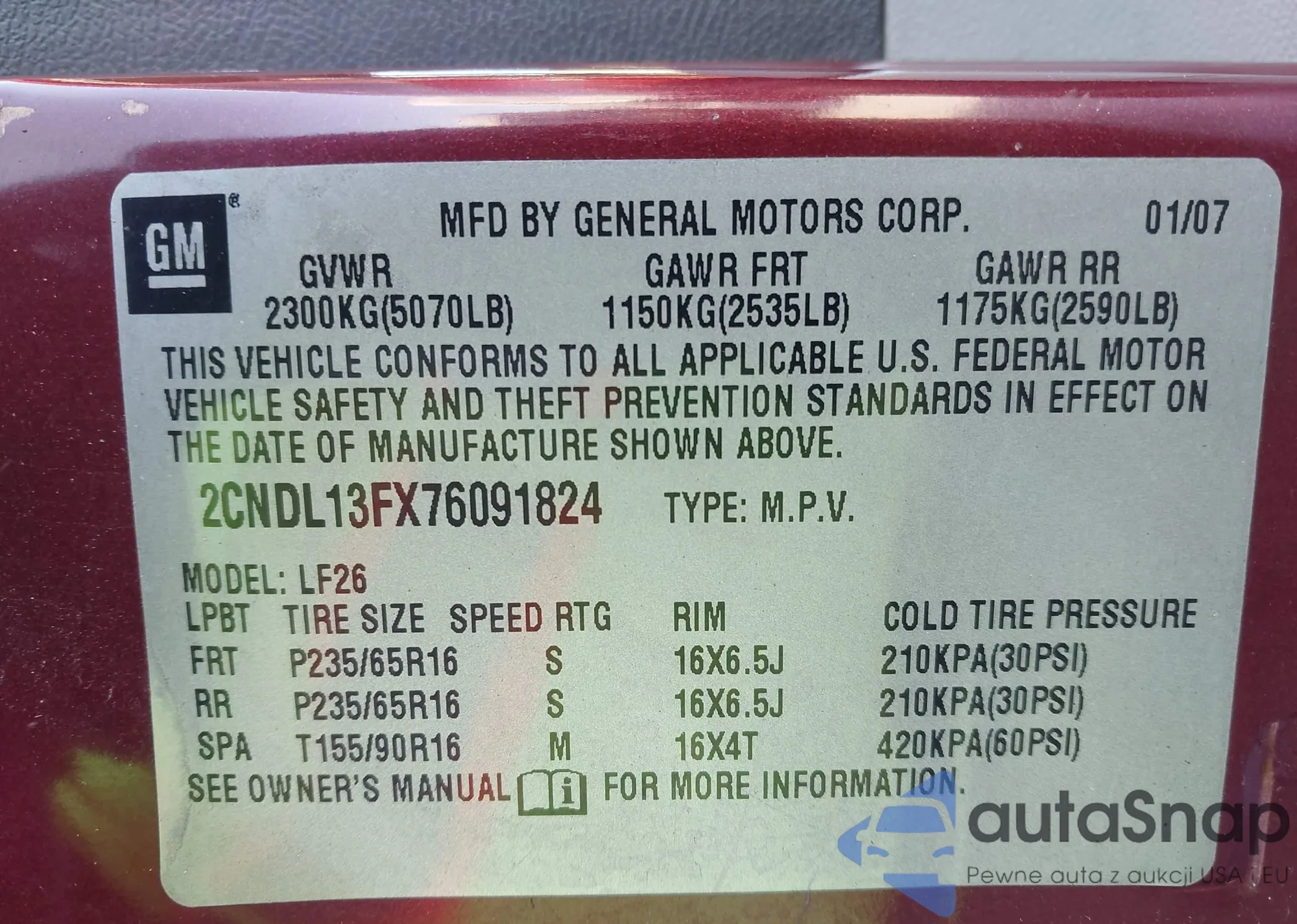 • VIN JN8AS5MT6FW165416