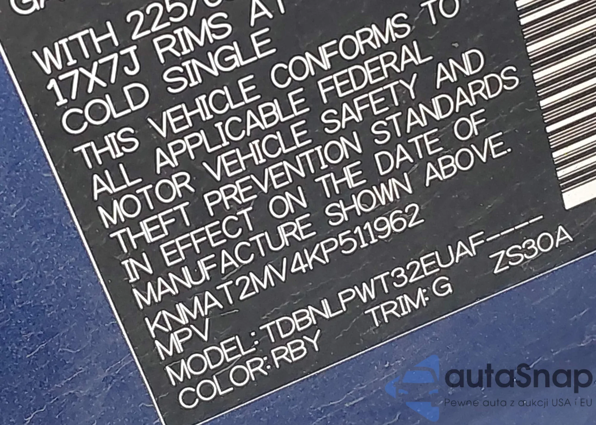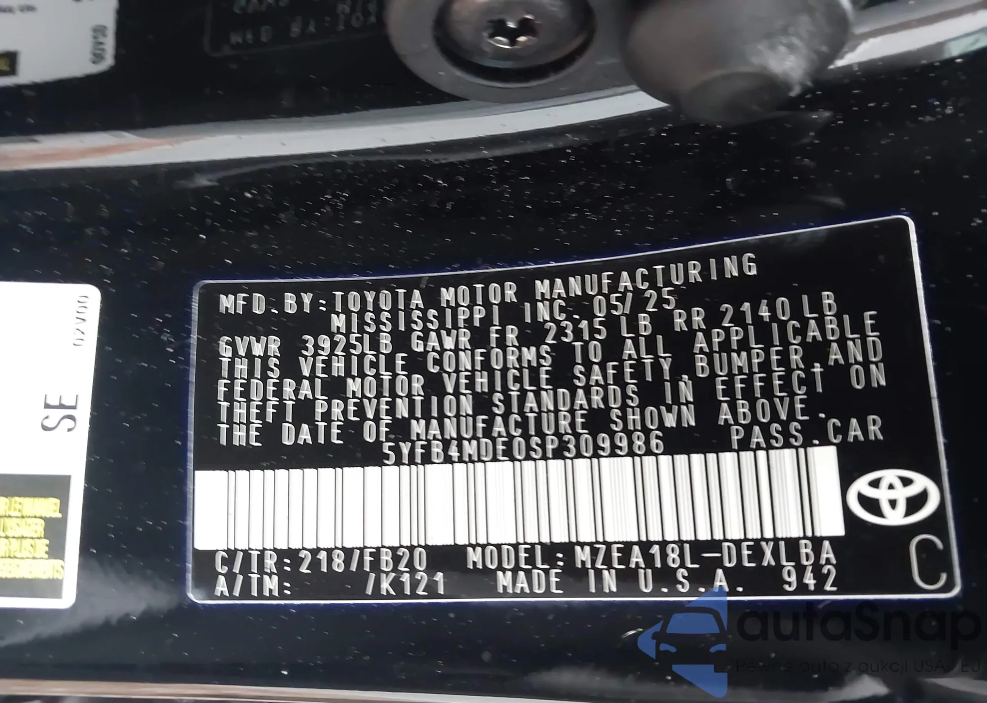 • VIN 5YFB4MDE0SP309986