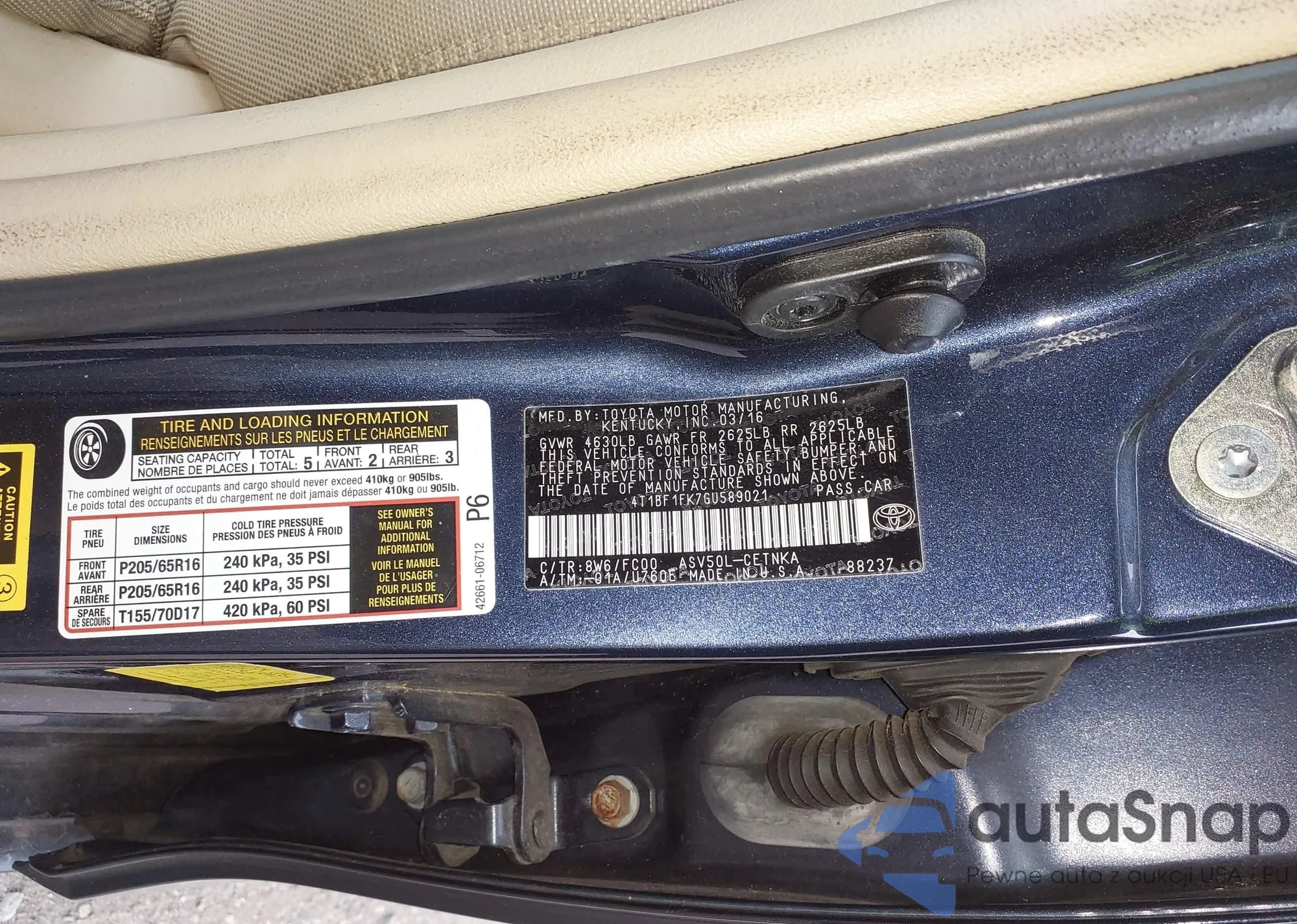 • VIN 4T1BF1FK7GU589021
