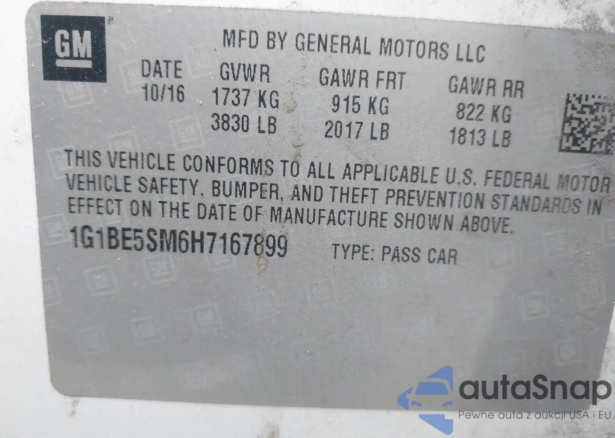 LOT: 43931405 VIN: WAUA7GFF0G1056221