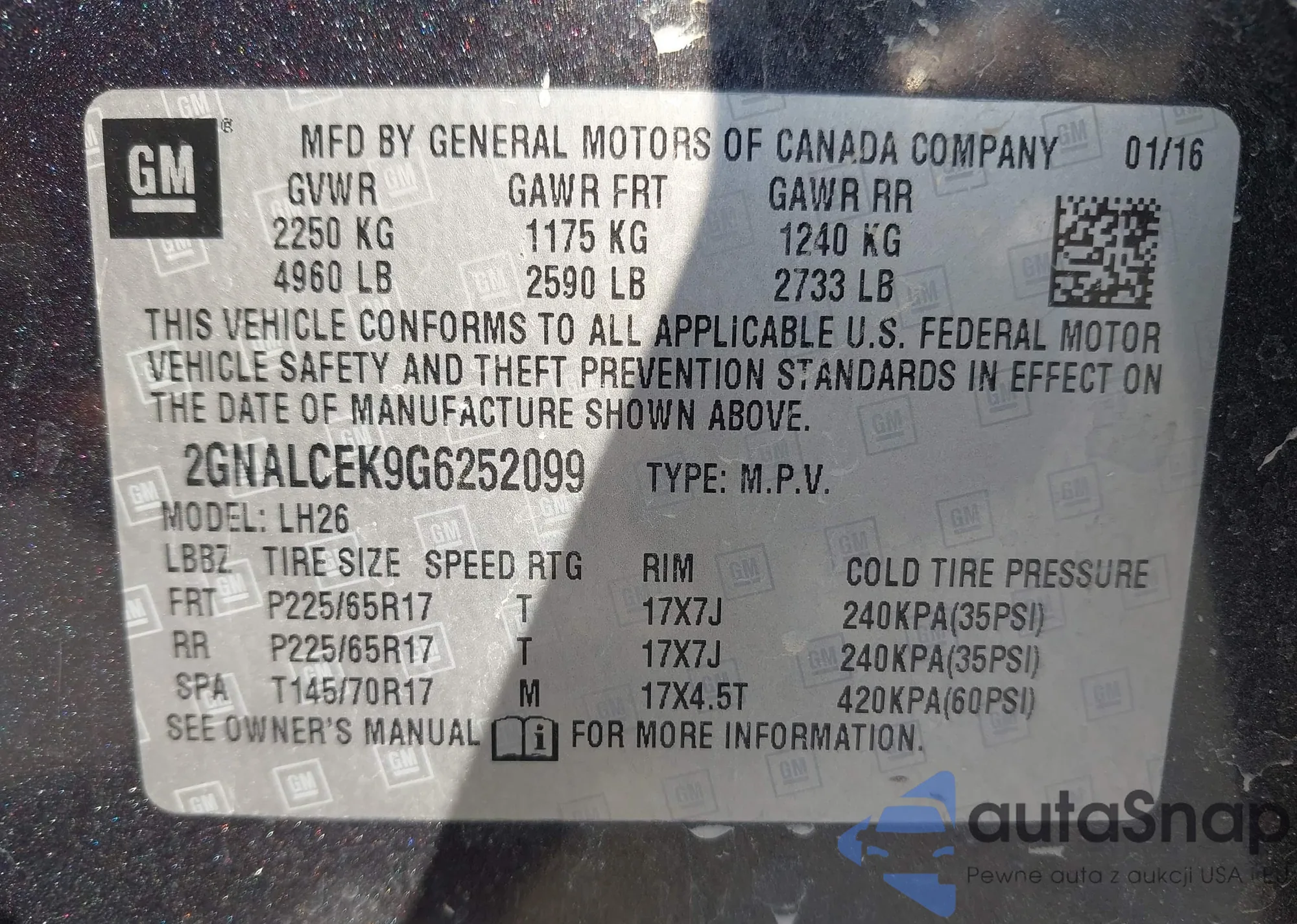• VIN 2GNALCEK9G6252099