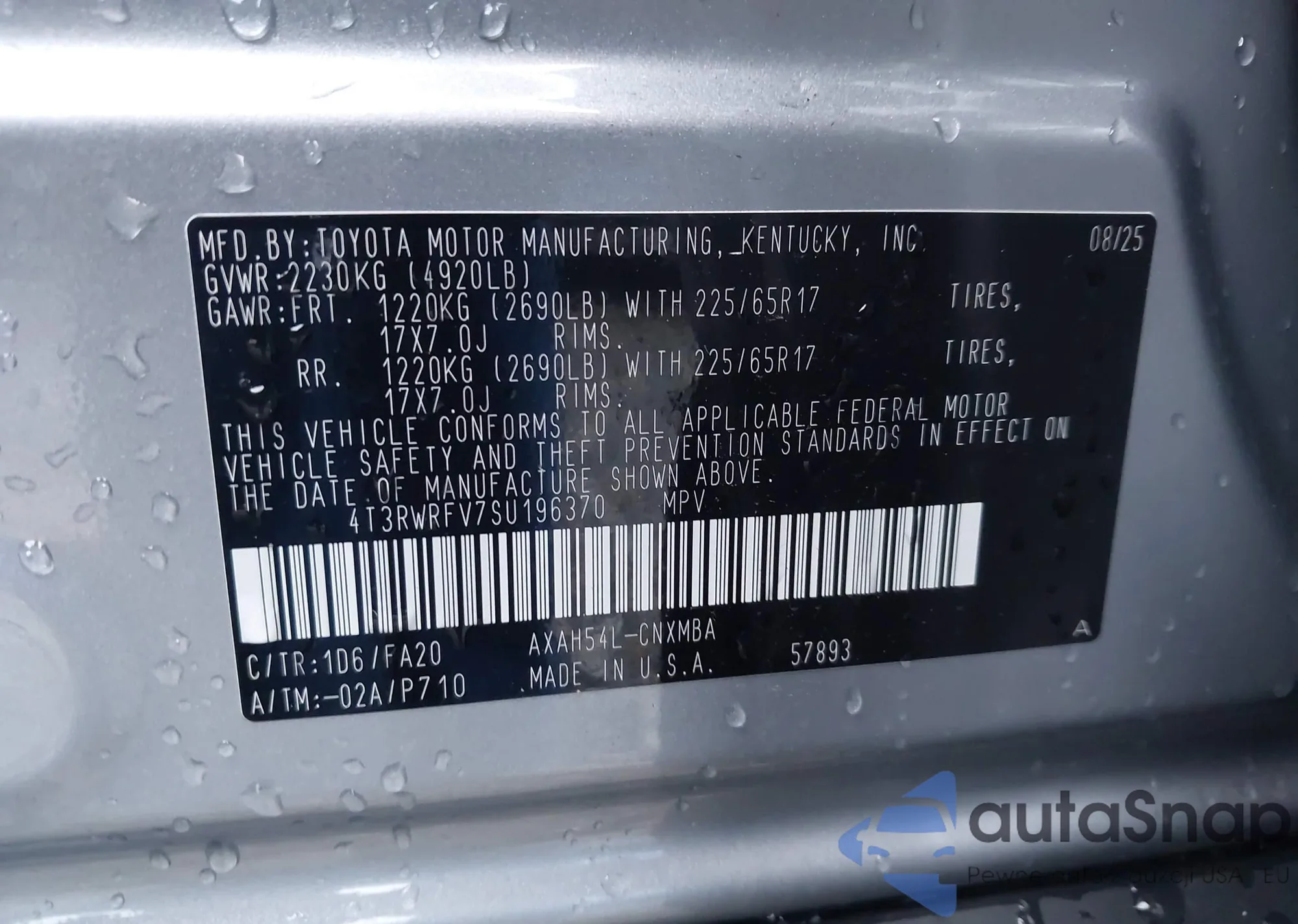 • VIN 4T3RWRFV7SU196370