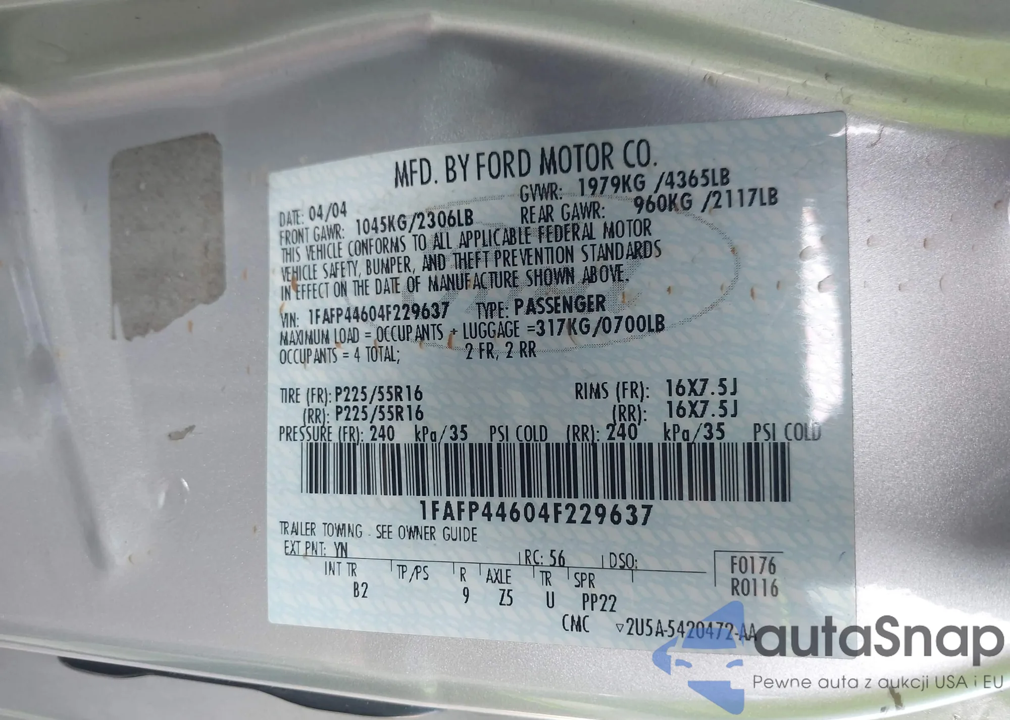 • VIN 1FAFP44604F229637