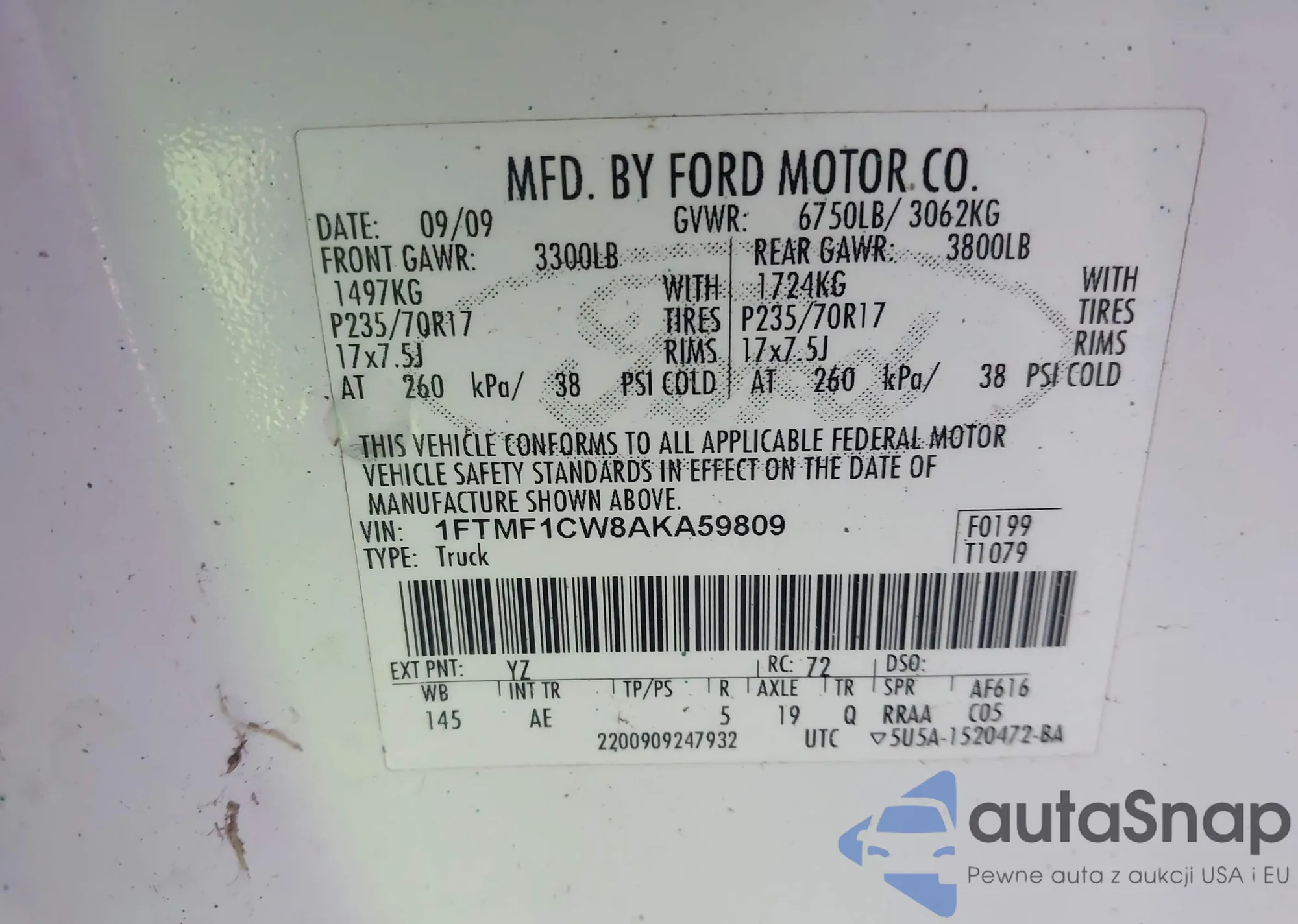 • VIN 1FTMF1CW8AKA59809