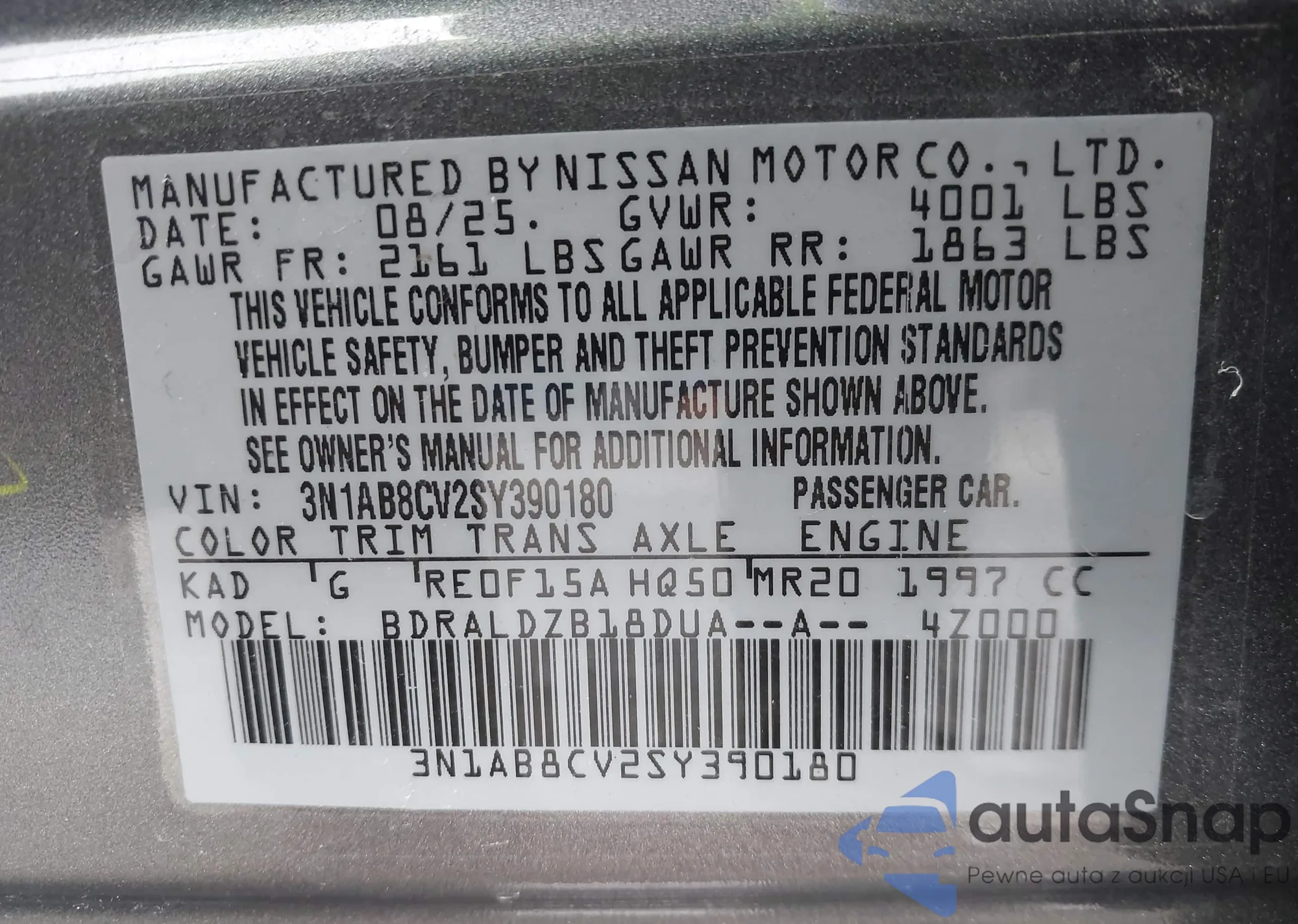 • VIN 3N1AB8CV2SY390180
