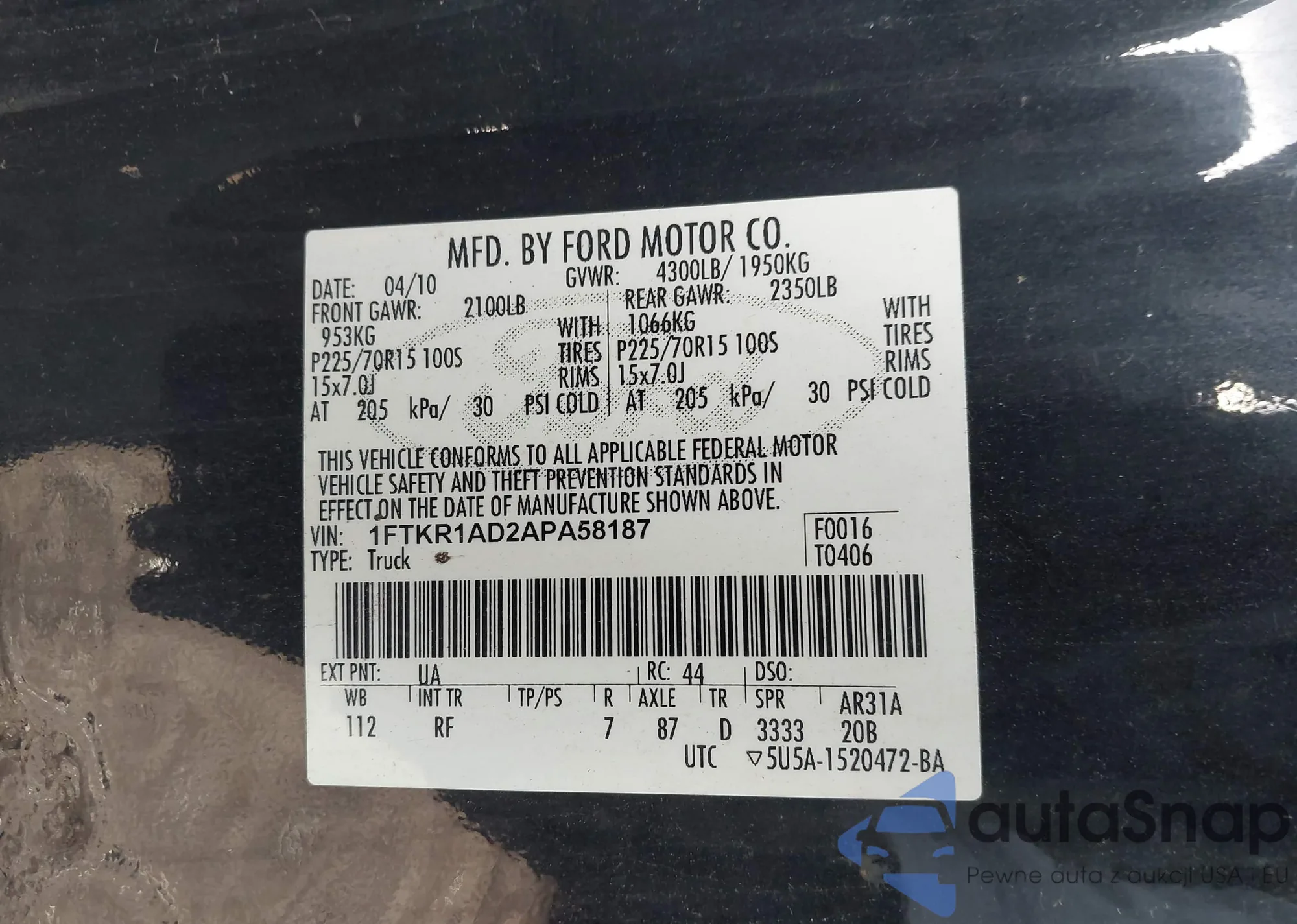 • VIN 1FTKR1AD2APA58187