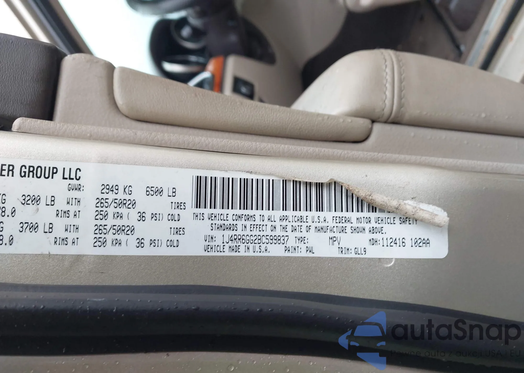 LOT: 43793510 VIN: 1J4RR6GG2BC599837