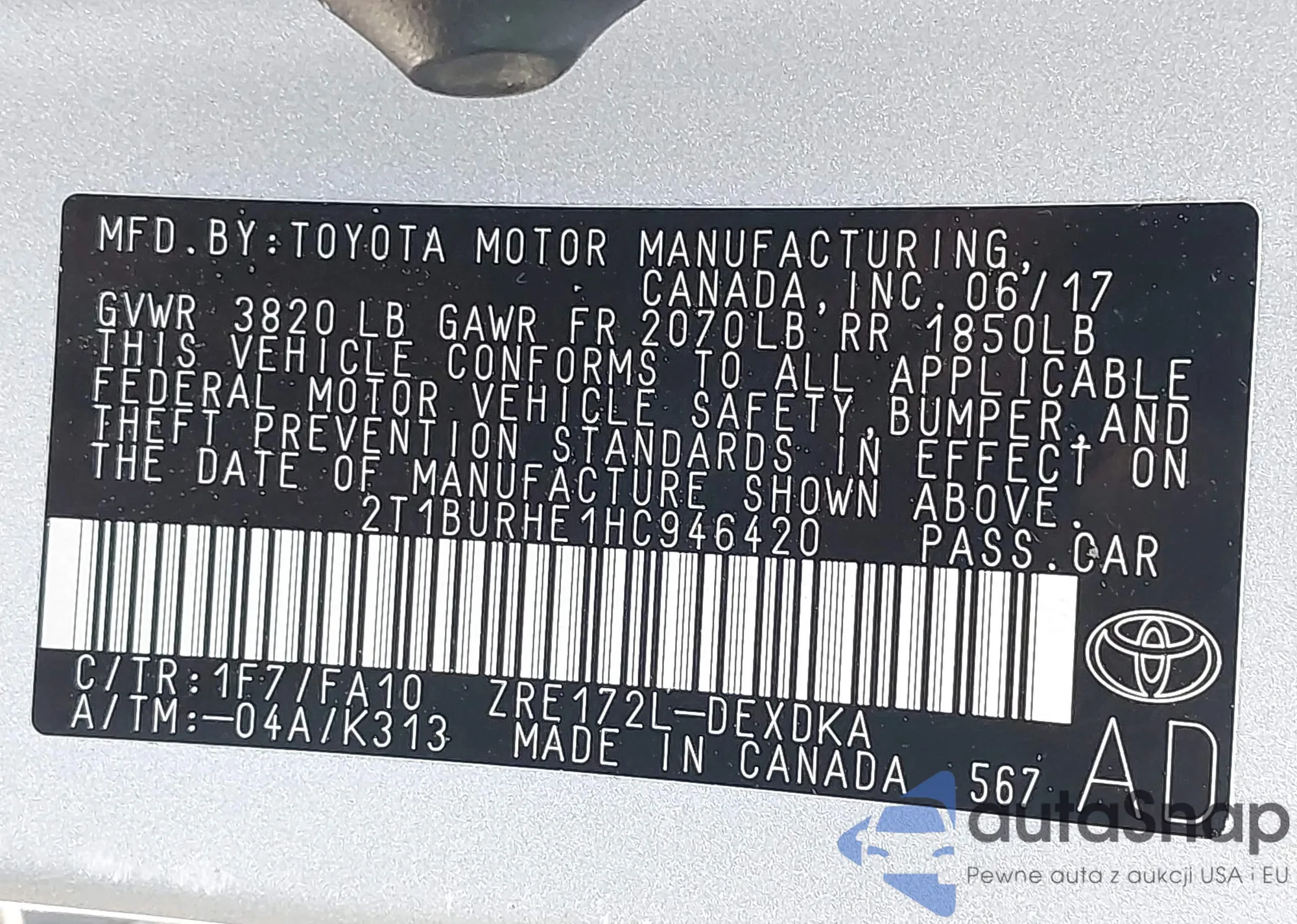 • VIN 4T1B11HK1JU676352