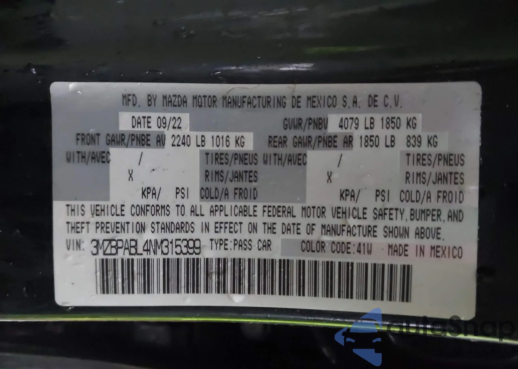 • VIN MAJ6S3FL3MC409188