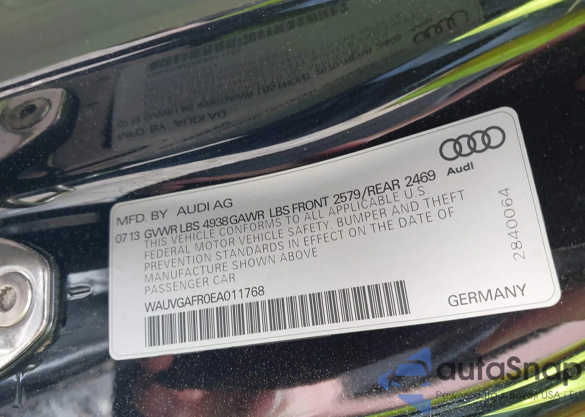 LOT: 42248653 VIN: WAUVGAFR0EA011768