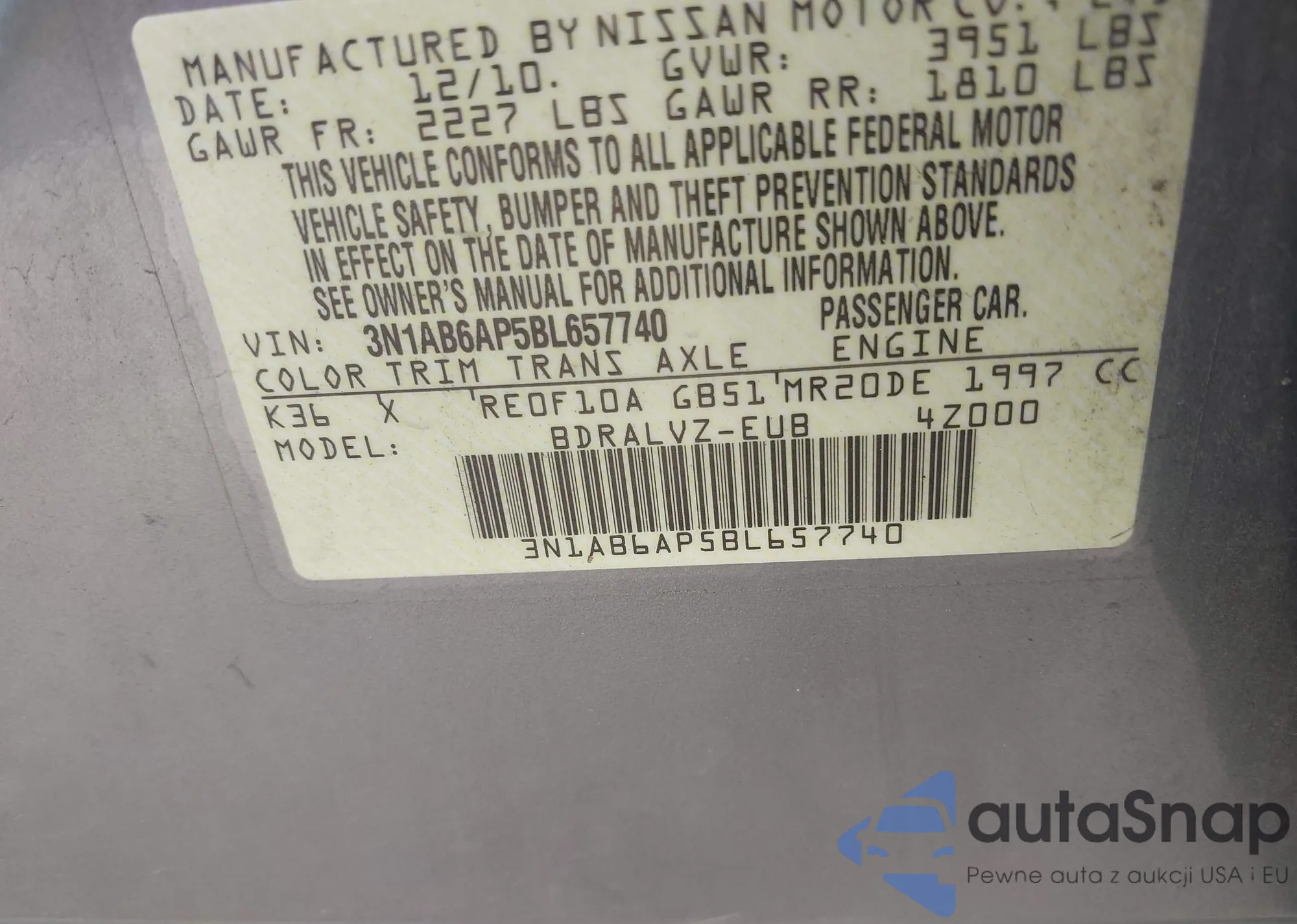 • VIN 3N1AB6AP5BL657740