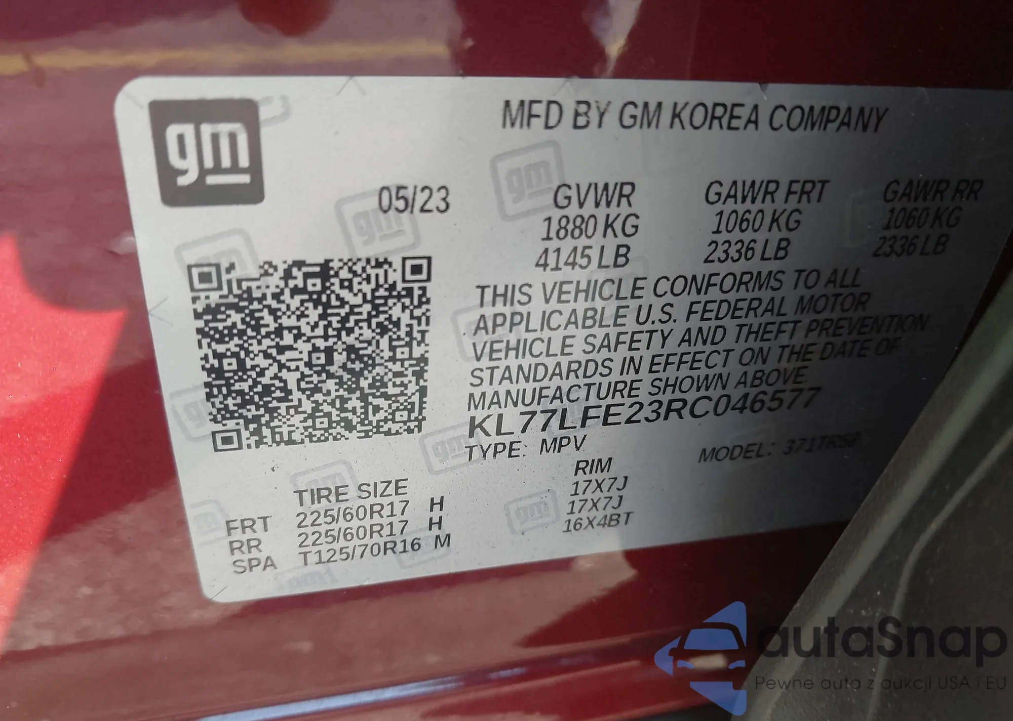 LOT: 43819011 VIN: KL77LFE23RC046577