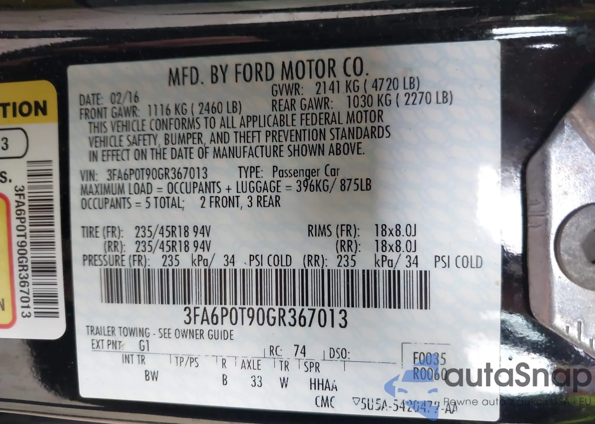 • VIN 3FA6P0T90GR367013