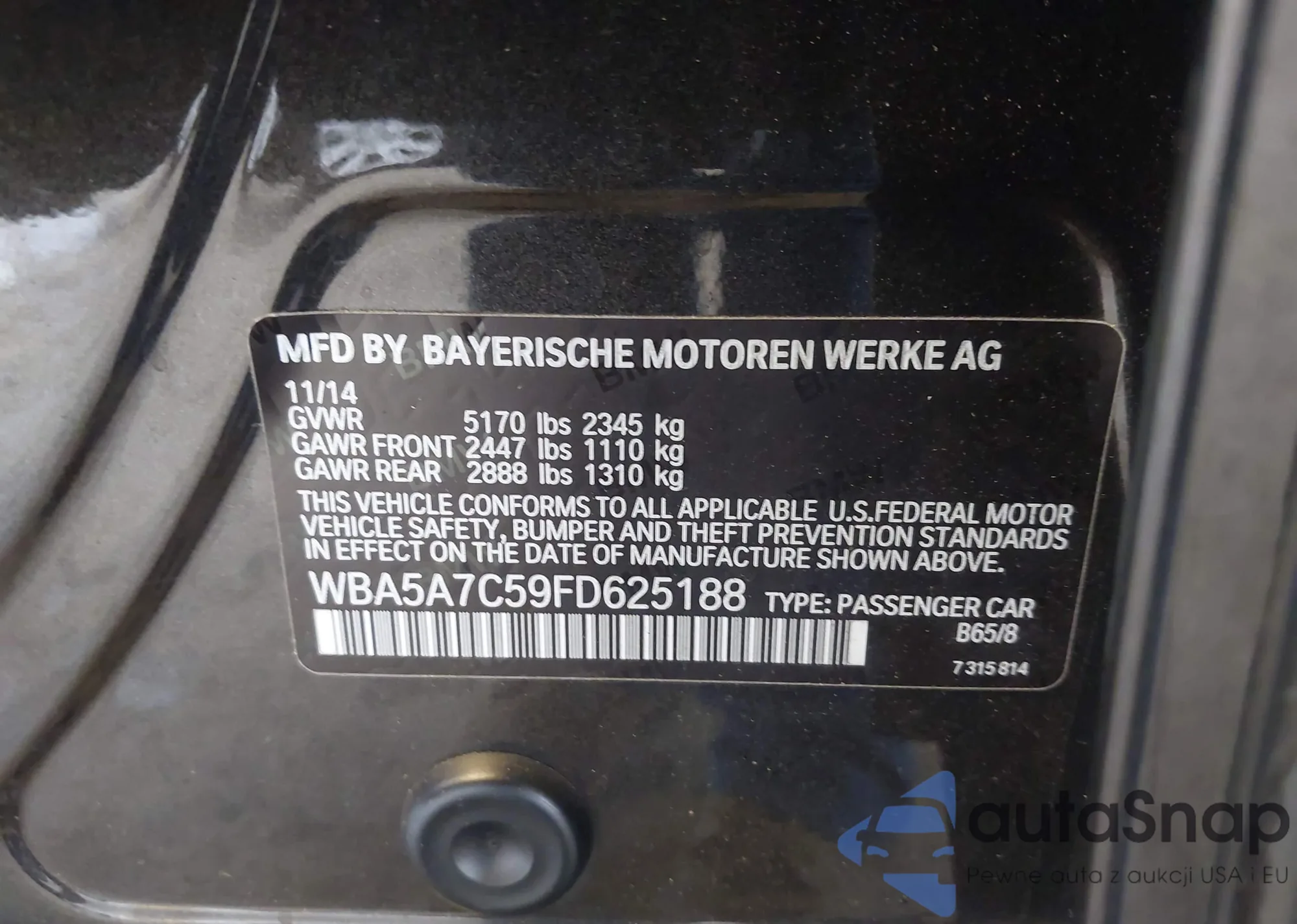 • VIN WBA5A7C59FD625188