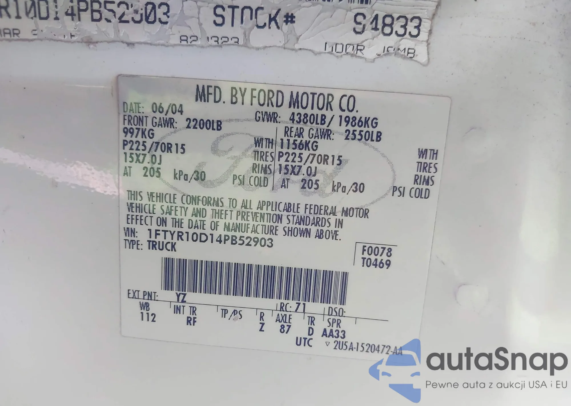 LOT: 43808374 VIN: IFTYR10D14PB52903
