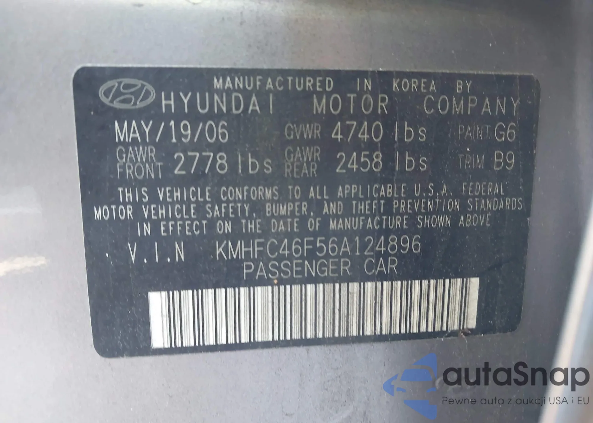 LOT: 43812586 VIN: KMHFC46F56A124896