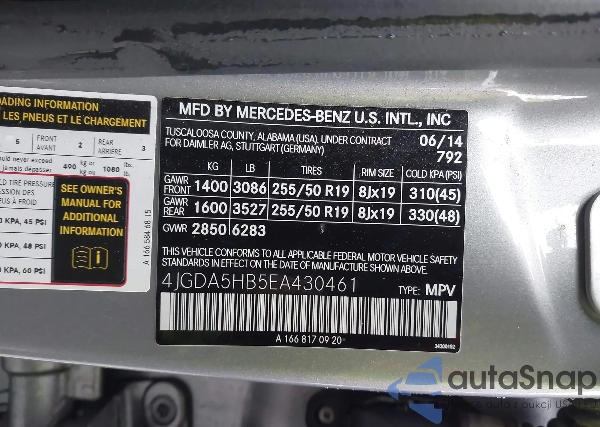 • VIN 4JGDA5HB5EA430461