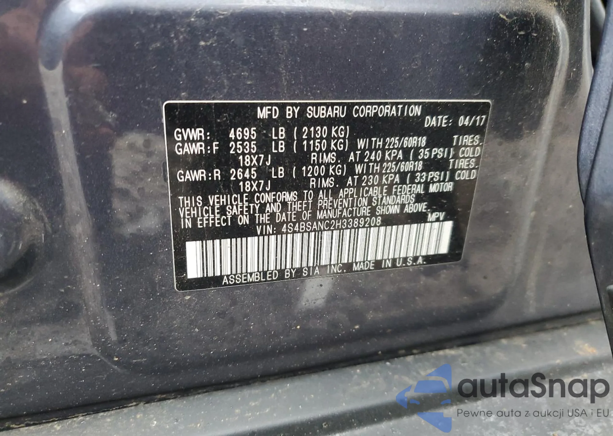 • VIN 4S4BSBNC5G3349564