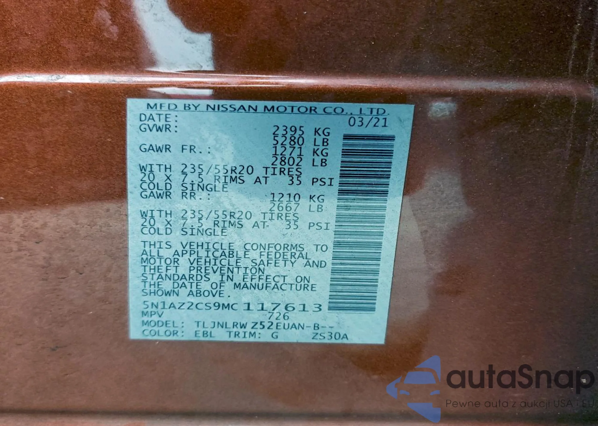 • VIN 5N1AZ2CS9MC117613