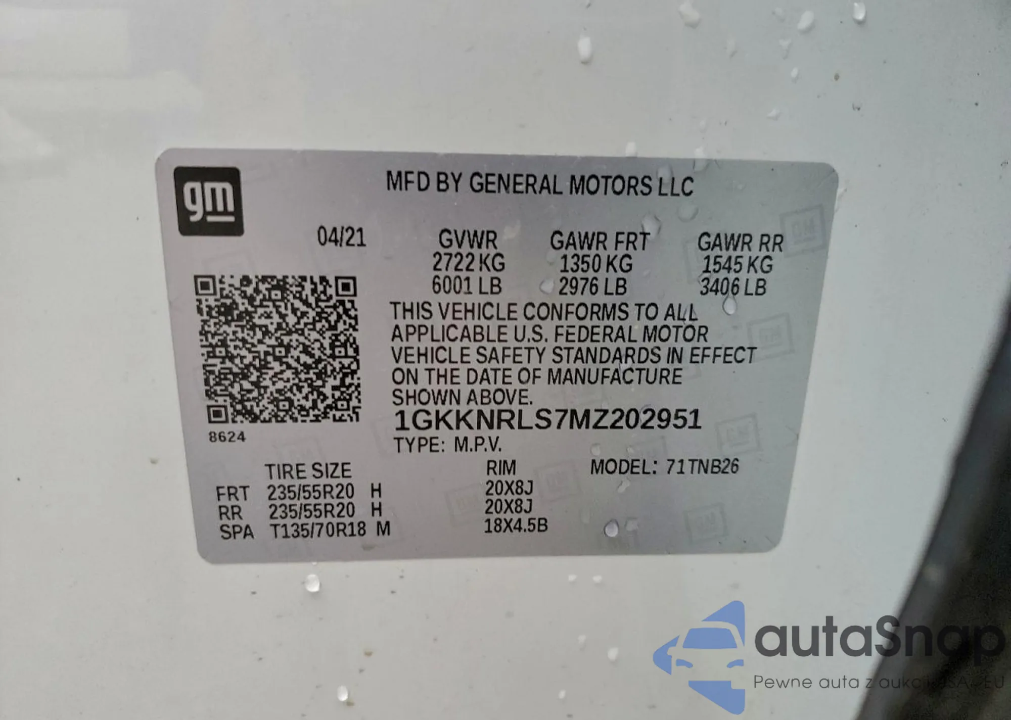 LOT: 94125055 VIN: 1GKKNRLS7MZ202951