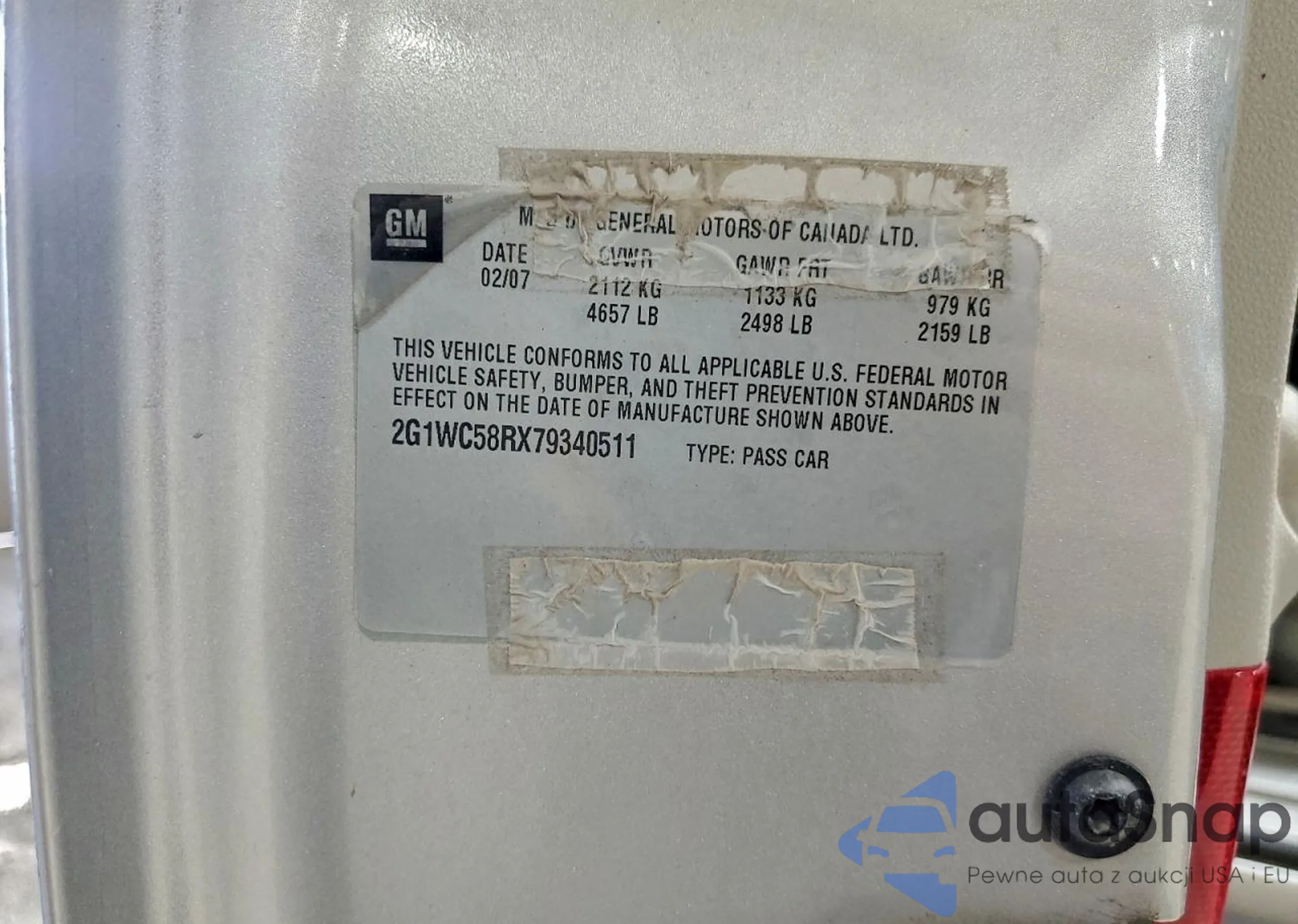 • VIN 2G1WC58RX79340511